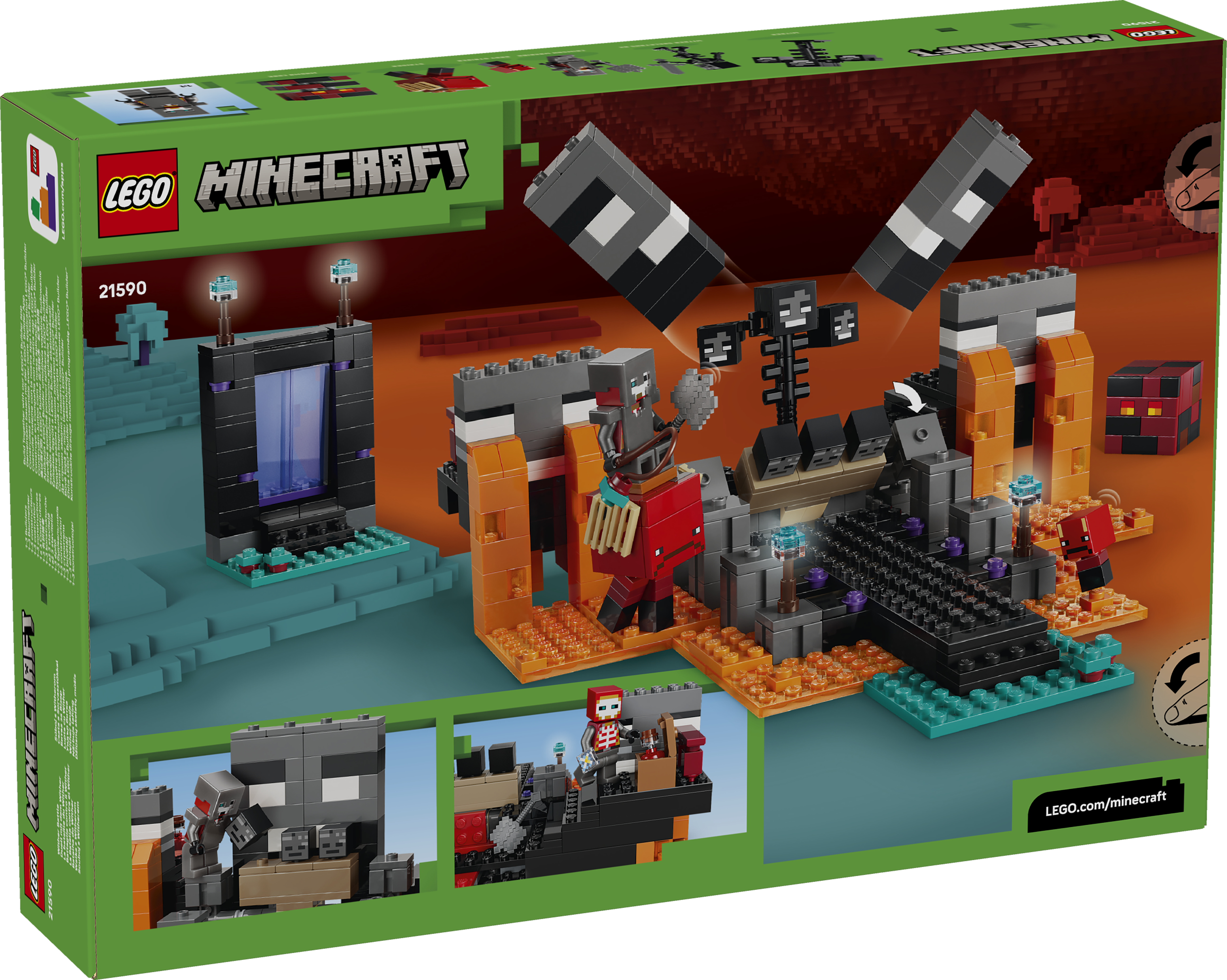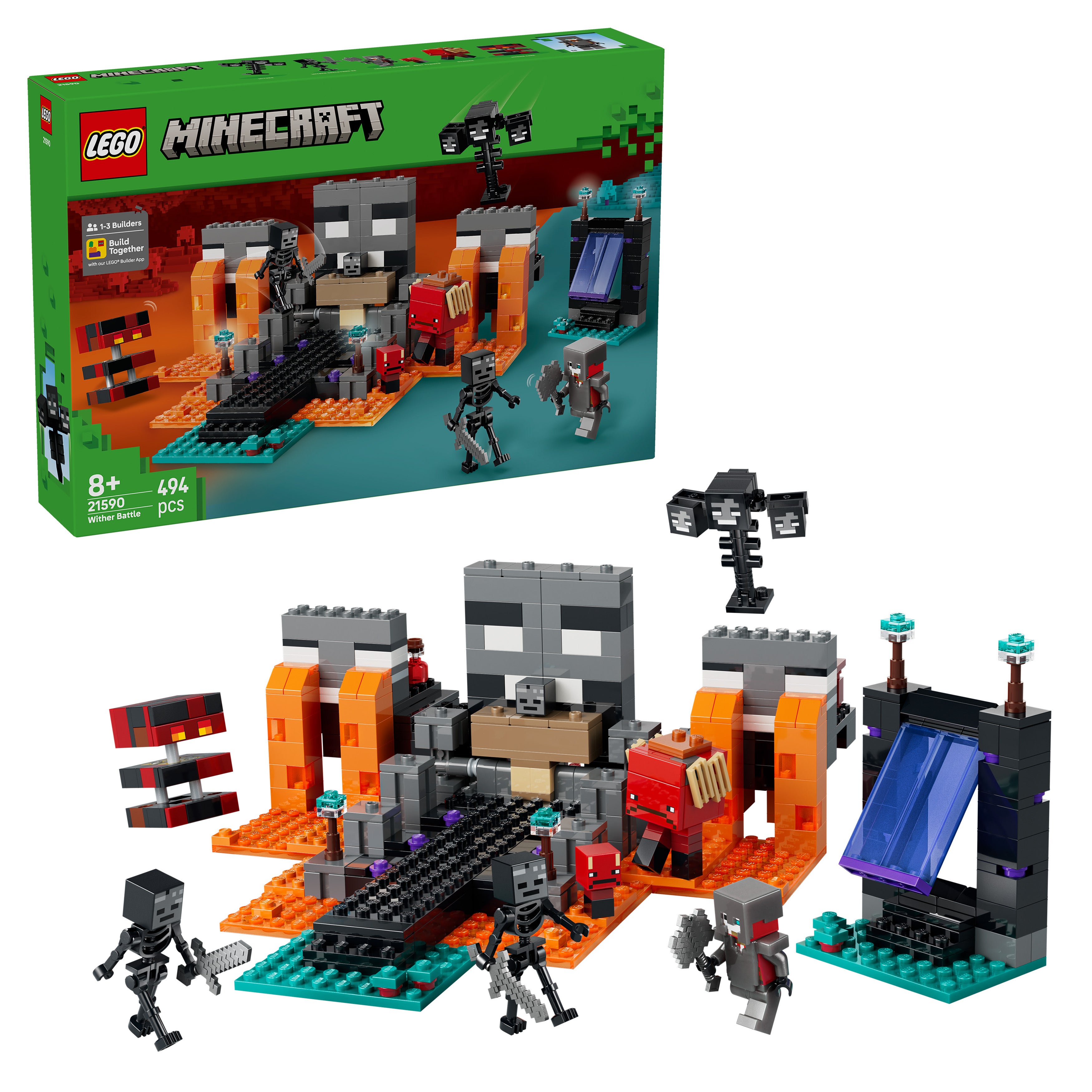 Transport Minecraft fans into epic adventures with the LEGO Minecraft Wither Battle (21590), designed for kids aged 8 and up. In the warped forest biome, children can join the Crimson Warrior as he battles two wither skeletons and other mob figures. This action-packed set includes a buildable Wither Boss, a Strider, a Magma Cube, and authentic Minecraft accessories. Play features include a Nether portal and a shrine, offering endless opportunities for imaginative Minecraft storytelling and role play.