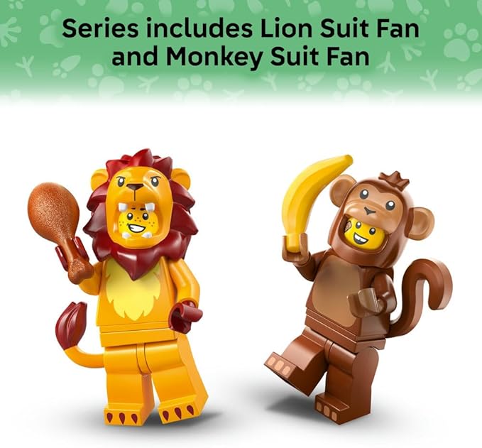 Collect the fun with LEGO Minifigures Animal Series 28! Designed for kids ages 5 and up, each mystery box contains 1 surprise minifigure, letting girls and boys play out creative animal-themed stories. With a total of 12 collectible characters—including parrot, lion, frog, crocodile, Dalmatian, goldfish, bunny, peacock, cat, koala, dolphin, and monkey—kids can build a full menagerie. Each minifigure comes in a sealed mystery box with at least one accessory, adding extra excitement to every unboxing.