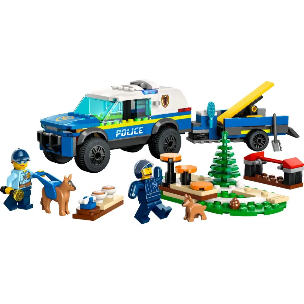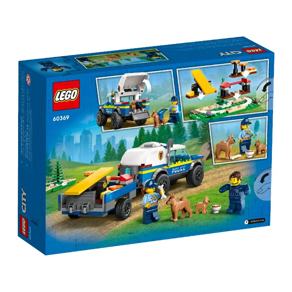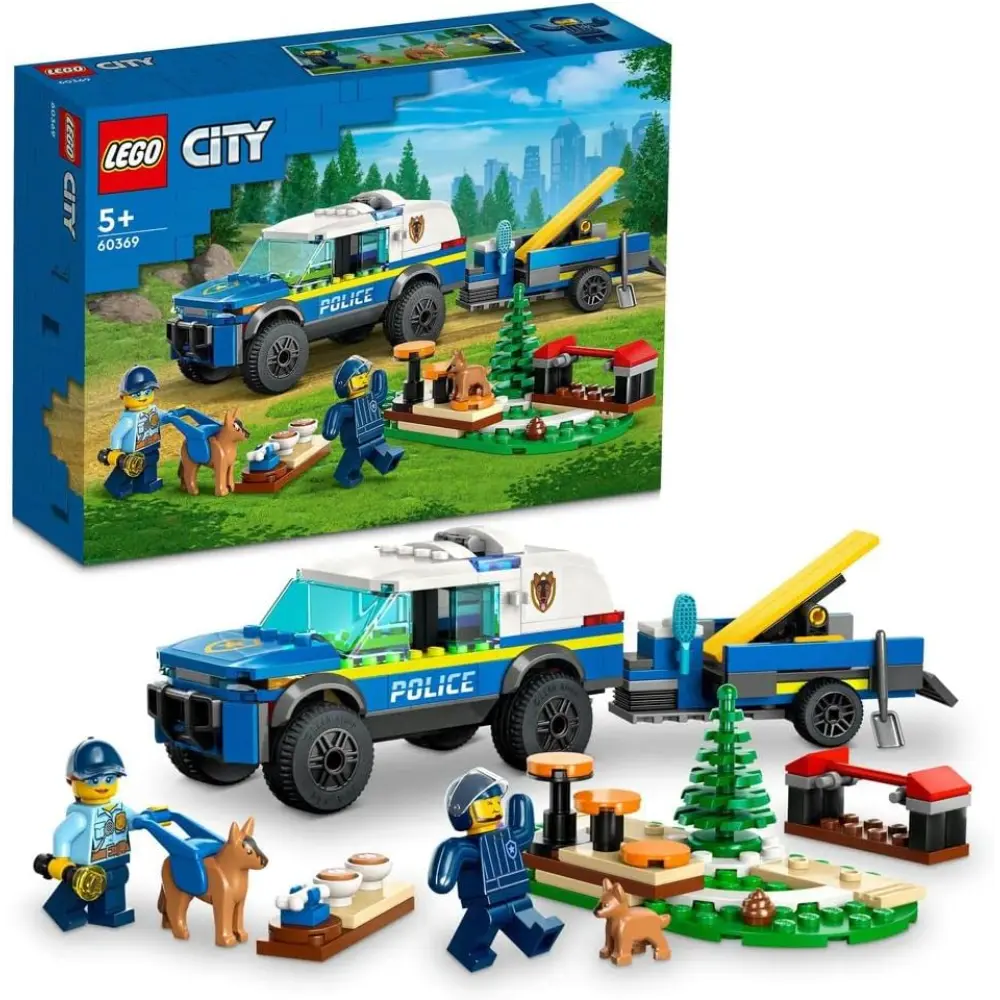 Kids and animal lovers aged 5 and up will enjoy hours of fun with the LEGO® City Mobile Police Dog Training (60369) playset. Designed to inspire imaginative play, this detailed set includes a K9 SUV with trailer and three training obstacles — a seesaw, jump bar, and stepping paws — for exciting dog-training adventures. With two police officer minifigures and dog and puppy figures, the fun can begin right away.