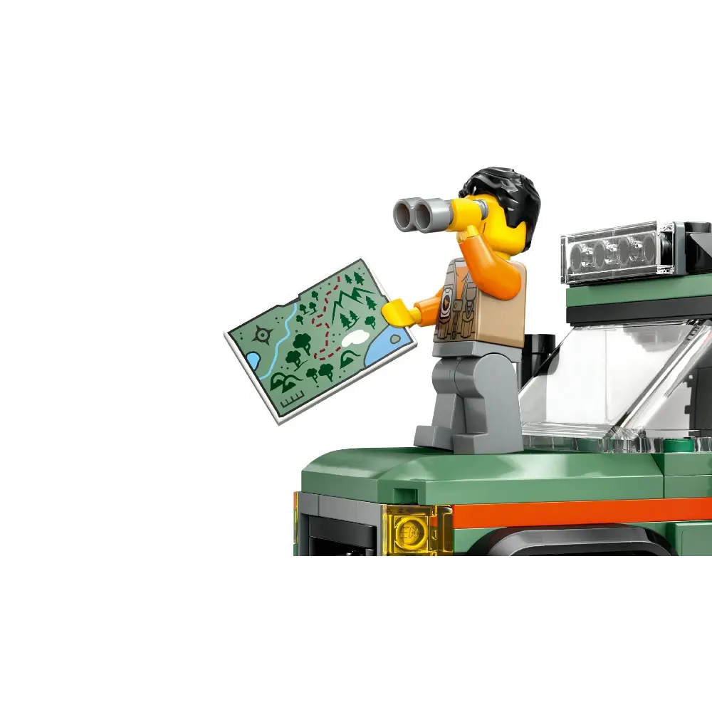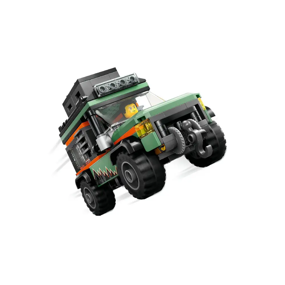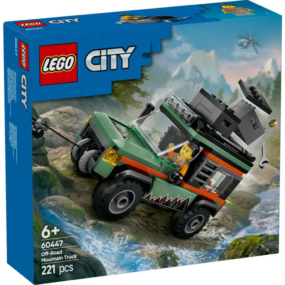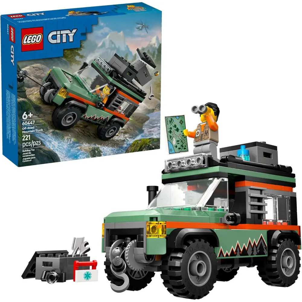 Kids can tackle rugged terrains with the LEGO® City Off-Road 4x4 Mountain Truck (60447) adventure set, designed for ages 6 and up. This durable off-road vehicle comes packed with roof storage boxes, tools, rugged tires, and a working winch to conquer steep hills and outdoor adventures. The flip-up snorkel and hood reveal engine details, adding extra realism to the play. Add the adventurer minifigure and let the exploration begin!