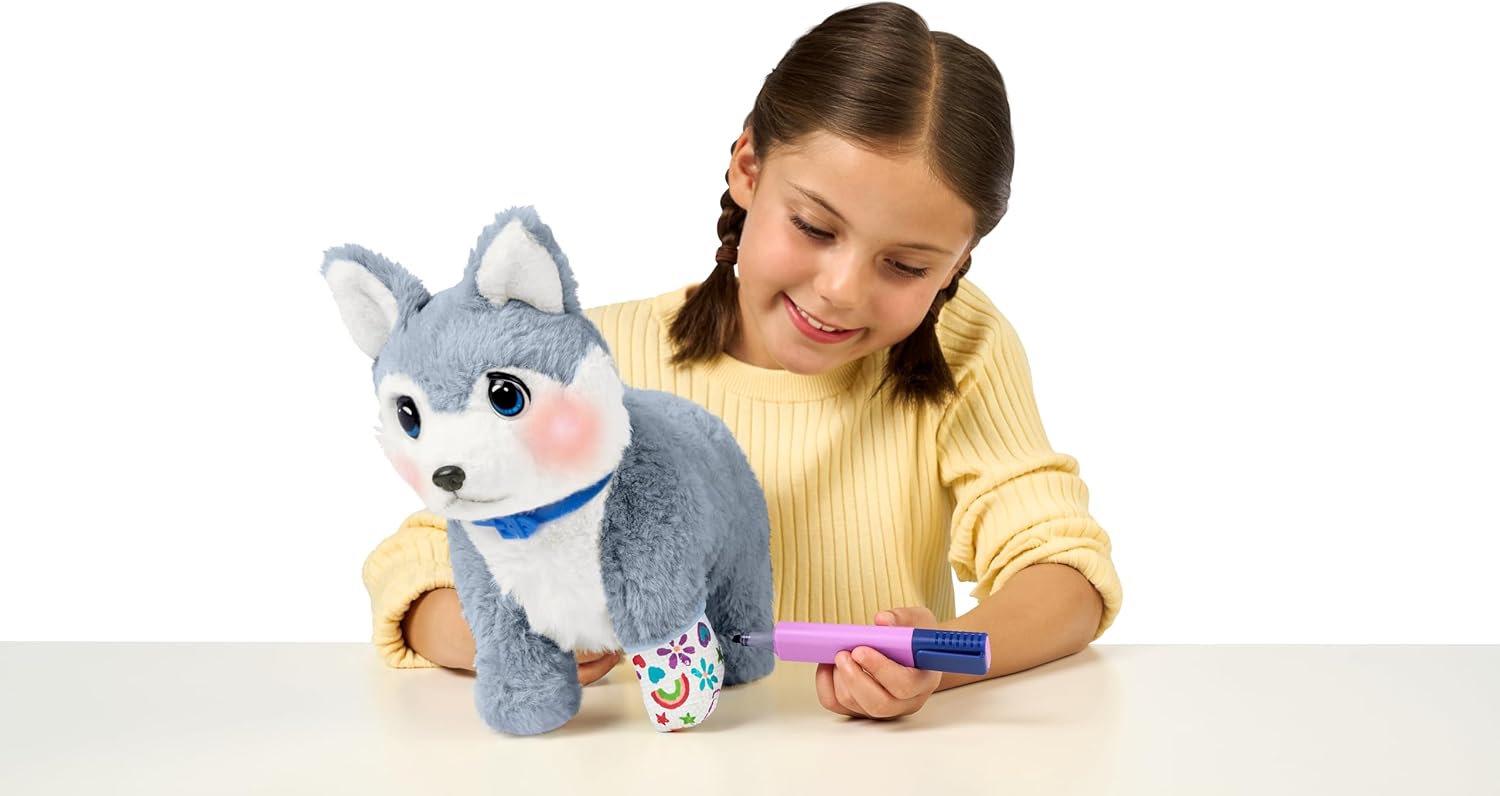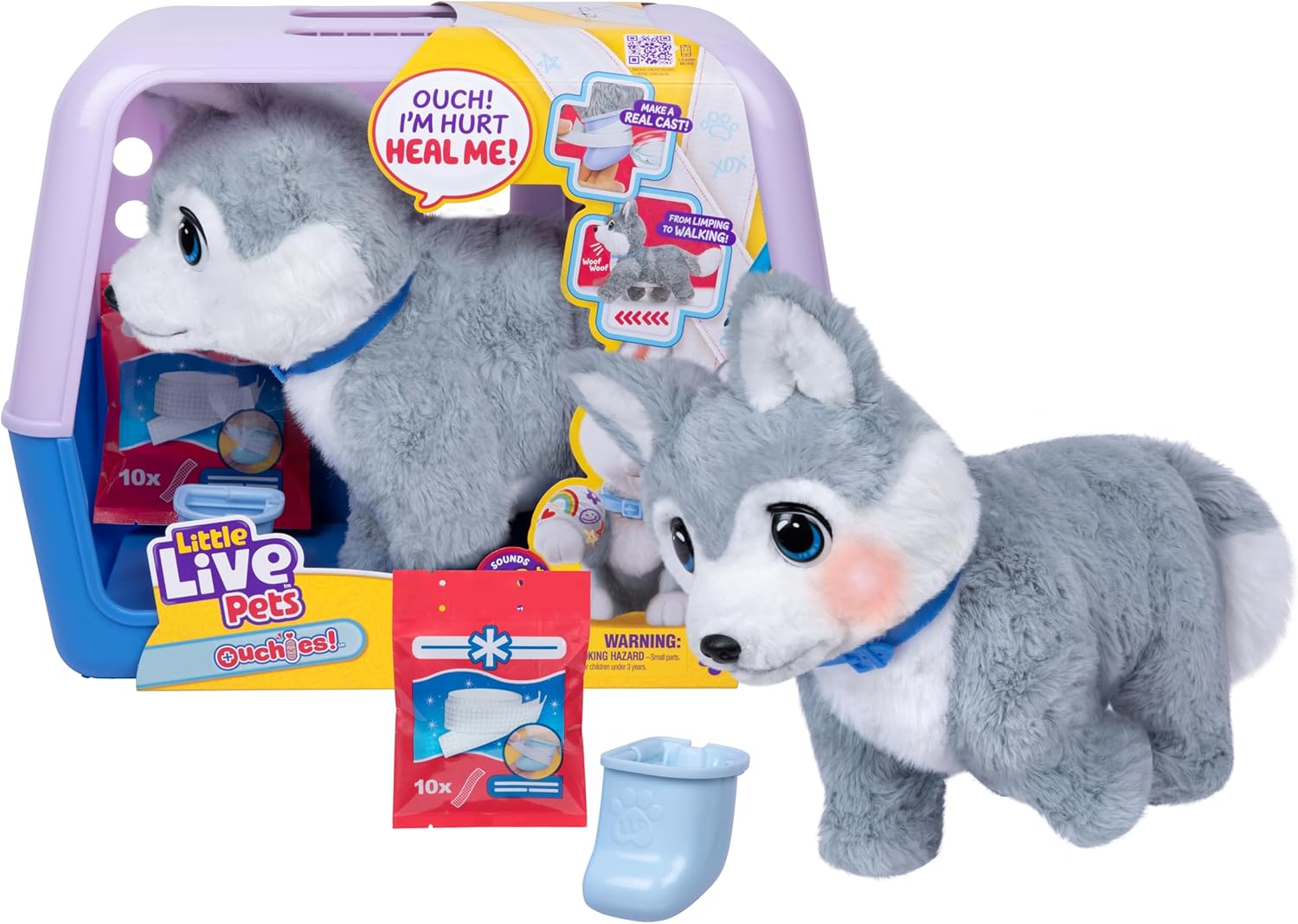 Meet Aspen from Little Live Pets Ouchies—an adorable husky puppy who needs your care to feel better! Aspen comes with an injured paw, and it’s up to your little one to help her heal. Using the included splint and wettable bandages, kids can nurture Aspen back to health while enjoying interactive play. With over 50 sounds and reactions, Aspen walks, responds to touch, glows with rosy cheeks, and makes irresistibly cute puppy noises. Caring for her teaches empathy, responsibility, and the joy of helping a friend feel better.