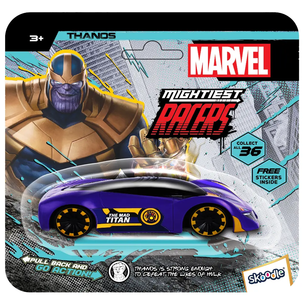 Dynamic and entertaining, our pull-back Marvel Hyper Car promise high-speed fun at your fingertips. Simply pull them back, release, and watch as they zoom forward, thrilling both kids and adults with their speedy antics. Compact, colourful, and built for excitement, these Marvel Hyper Car are a must-have for endless playtime joy. Your Thanos figure will be way too fast for his enemies to handle on this incredible crime-fighting.
