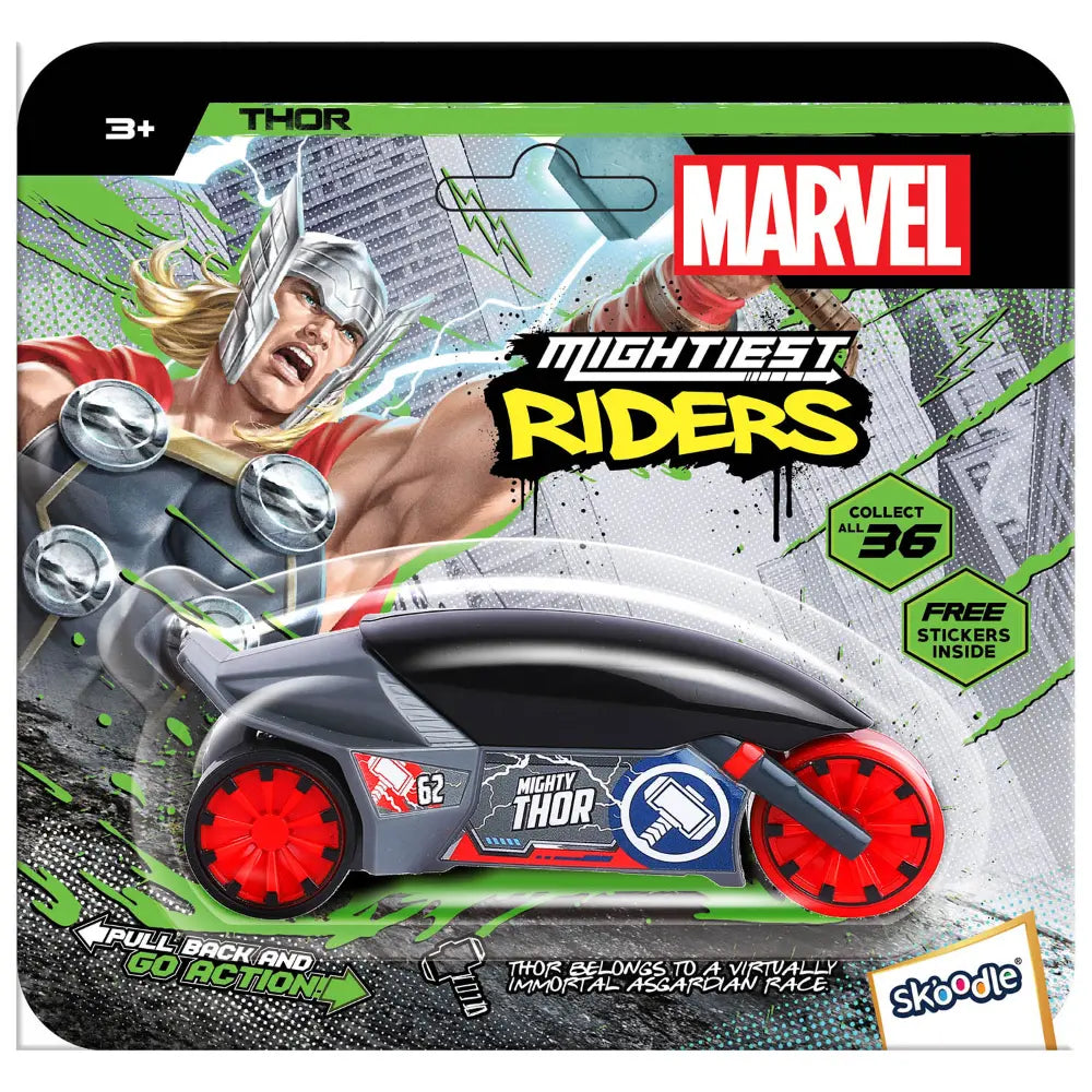 Dynamic and entertaining, our pull-back Marvel Rider Bike promise high-speed fun at your fingertips. Simply pull them back, release, and watch as they zoom forward, thrilling both kids and adults with their speedy antics. Compact, colourful, and built for excitement, these Marvel Rider Bike are a must-have for endless playtime joy. Your Thor figure will be way too fast for his enemies to handle on this incredible crime-fighting.