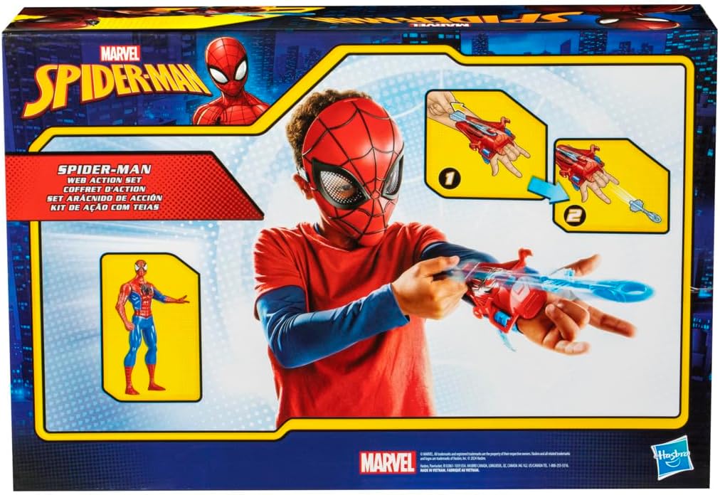 Swing into action with the Marvel Spider-Man Web Action Set — the ultimate 3-in-1 play kit for young heroes! This set includes a Spider-Man mask, a web slinger, and a 6-inch action figure, giving kids everything they need to imagine thrilling adventures and heroic battles just like Spider-Man. Perfect for role play or display, it brings superhero action to life.