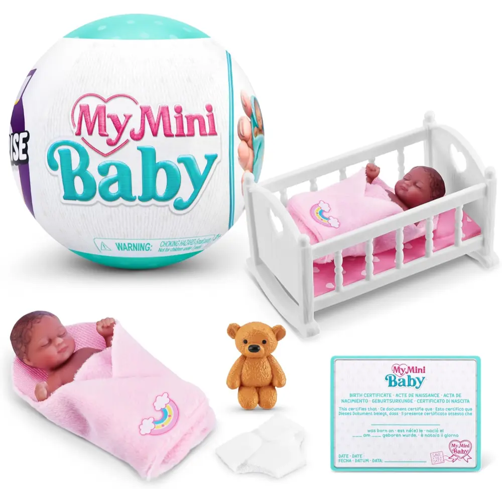 So Real! So Mini! So Cute! Meet the cutest, ultra-realistic, mini babies with 5 Surprise My Mini Baby! Peel, unwrap and reveal the 5 Surprises inside. There are 12 babies and playsets to discover. Will you find the Sleep Time, Stroller Outing, Play Time, or Diaper Change playset? It's time to name your adorable Mini Baby and fill in their birth certificates. Collect all 12 My Mini Baby companions and create the cutest mini nursery!