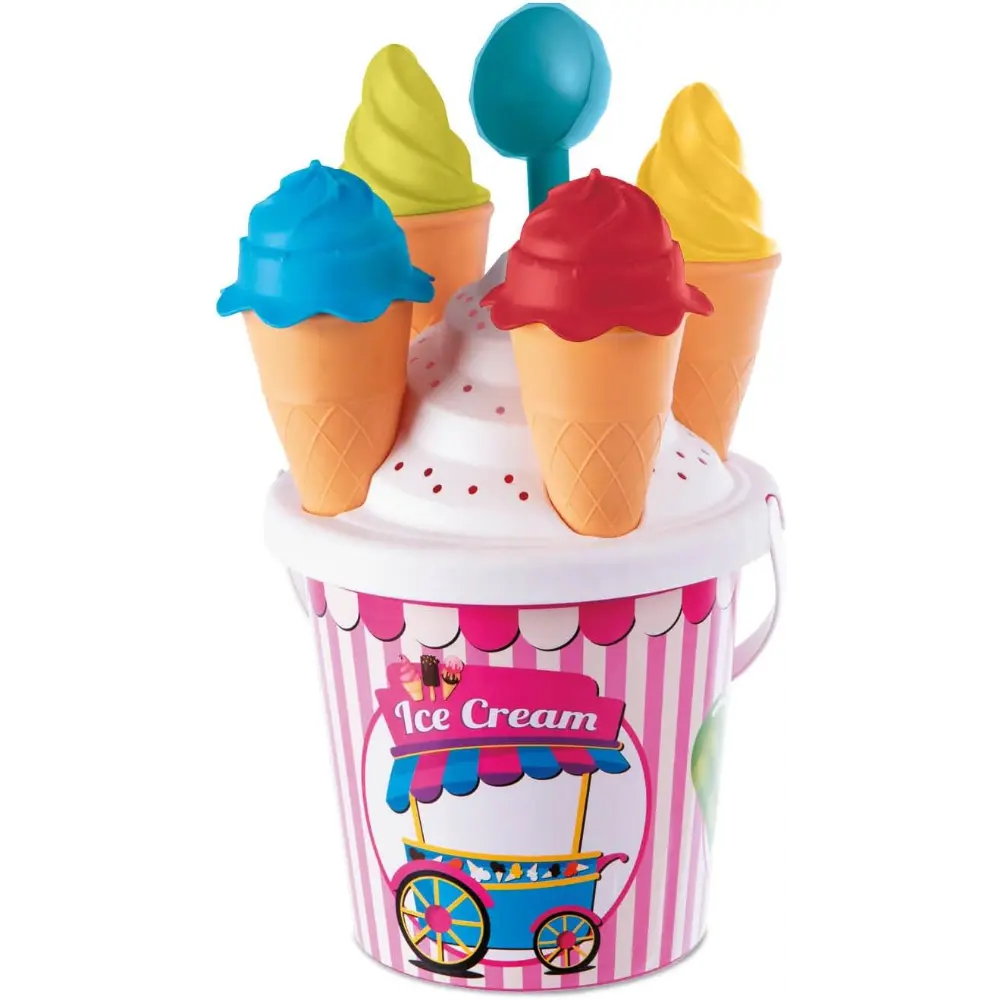 Make playtime at the beach extra sweet with this charming 17 cm Beach Bucket Set! Designed with colorful moulds in fun ice cream shapes, a handy spoon, and a secure lid, this bucket is perfect for building creative sand treats. Its delightful striped design with white roses and a classic ice cream cart illustration adds a touch of vintage charm, making it as stylish as it is fun. Compact and easy to carry, this bucket set is ideal for hours of imaginative sand play at the beach, park, or sandbox.
