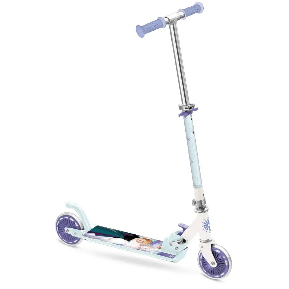 This Disney Frozen folding street scooter by MONDO is perfect for the seasoned scooter rider. It stands out immediately and is especially popular with the Girls. The handlebar height adjustable from 59cm to approx. 64cm.The Frozen design beautifies your scooter on the running board with a wide non slip coating surface, foldable handlebar are easy to fold up and makes easy to transport. It comes with a sturdy aluminium frame that can withstand a maximum ride capacity of 50kg with a rear wheel pedal break.
