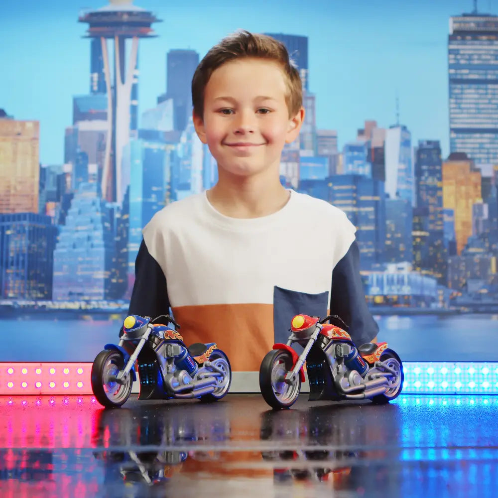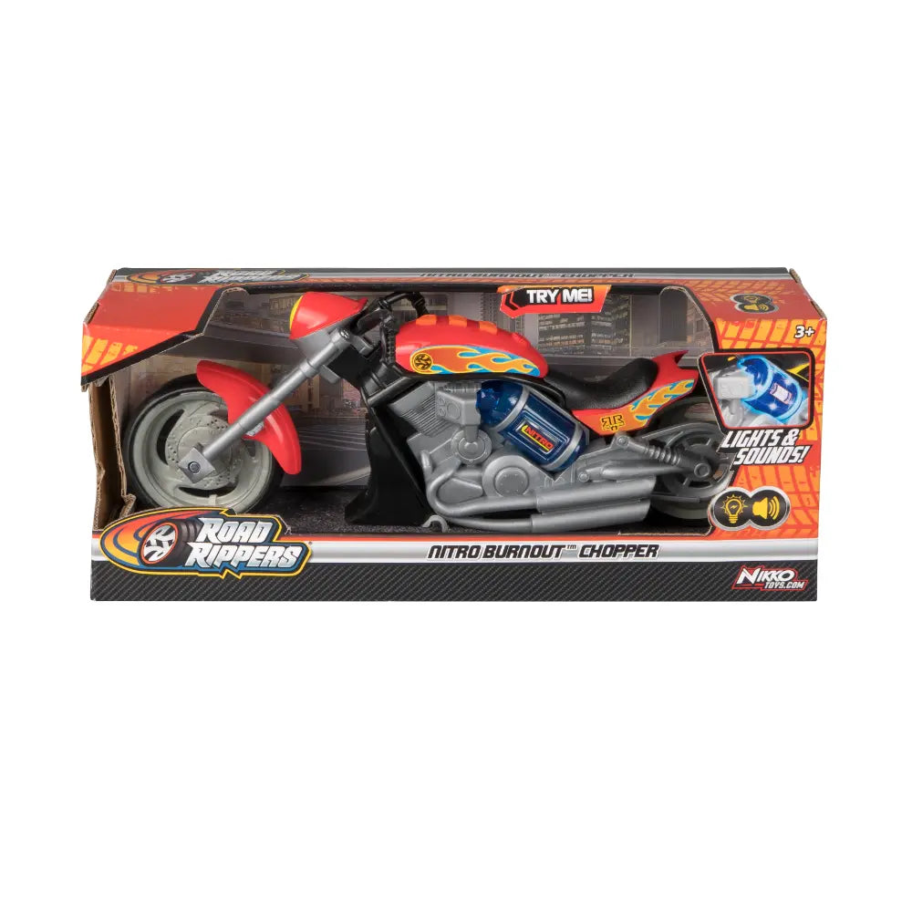 Hit the road in style with Custom Choppers, the push-powered motorcycles packed with lights, sounds, and cool design details. Featuring rumbling engine effects and light-up nitrous tanks, these choppers deliver a thrilling play experience that sparks the imagination. With realistic sounds, glowing features, and durable construction, kids can rev, ride, and show off their bikes again and again. Perfect for young motorcycle fans ages 3 and up, these choppers bring big fun and action to every playtime adventure.