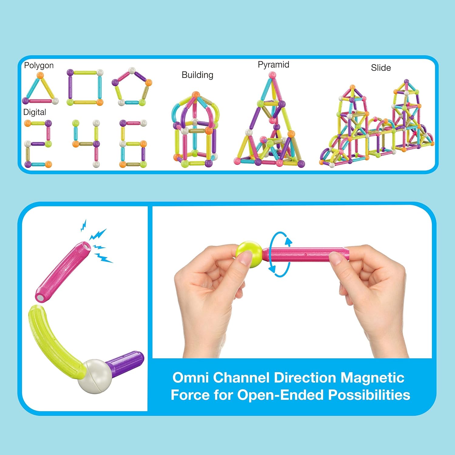Unleash endless building possibilities with the Picasso Magnetic Bars Set. Featuring 100 magnetic bars, children can construct 3D structures, geometric shapes, and imaginative designs. Perfect for hands-on STEM learning, this set encourages creativity, problem-solving, spatial reasoning, and fine motor skill development.