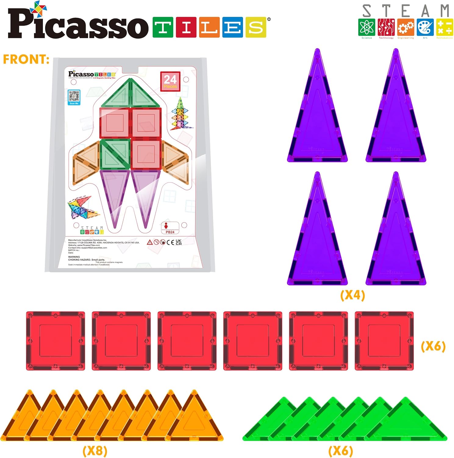 Unleash creativity and STEM learning with the PicassoTiles 24-Piece 3D Magnetic Building Tile Set. Featuring vibrant triangles and squares, this set allows children to explore color, shapes, and magnetic principles while building imaginative structures. Perfect for hands-on play, it encourages problem-solving, storytelling, and family bonding for toddlers, kids, and even adults.