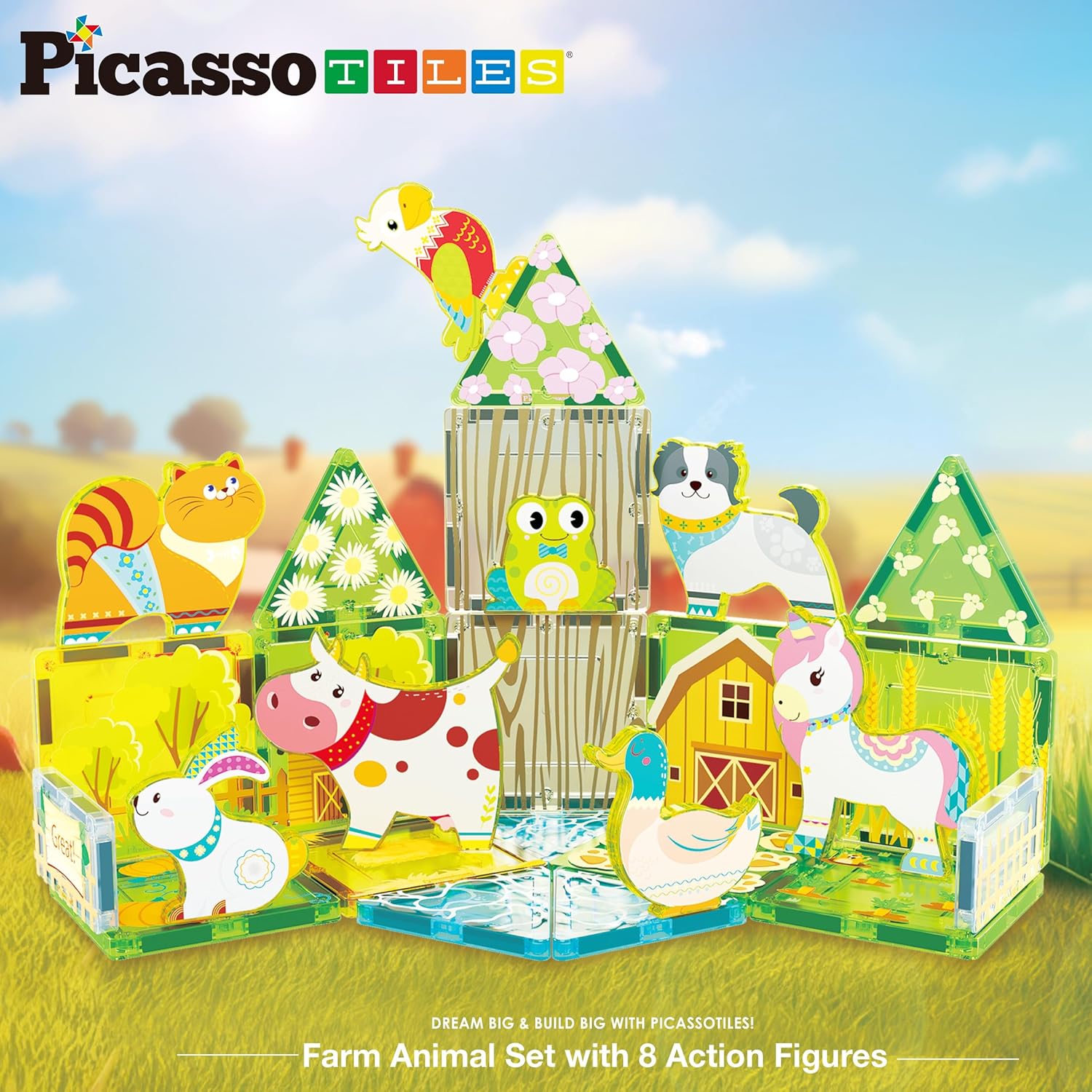 Bring farm life to your child’s playtime with the PicassoTiles Magnetic Tiles Farm Set. Featuring 26 colorful magnetic tiles, kids can build barns, fences, and farm scenes, complete with animals and farm structures. This hands-on STEM toy promotes creativity, problem-solving, and fine motor skills while providing endless open-ended play opportunities.