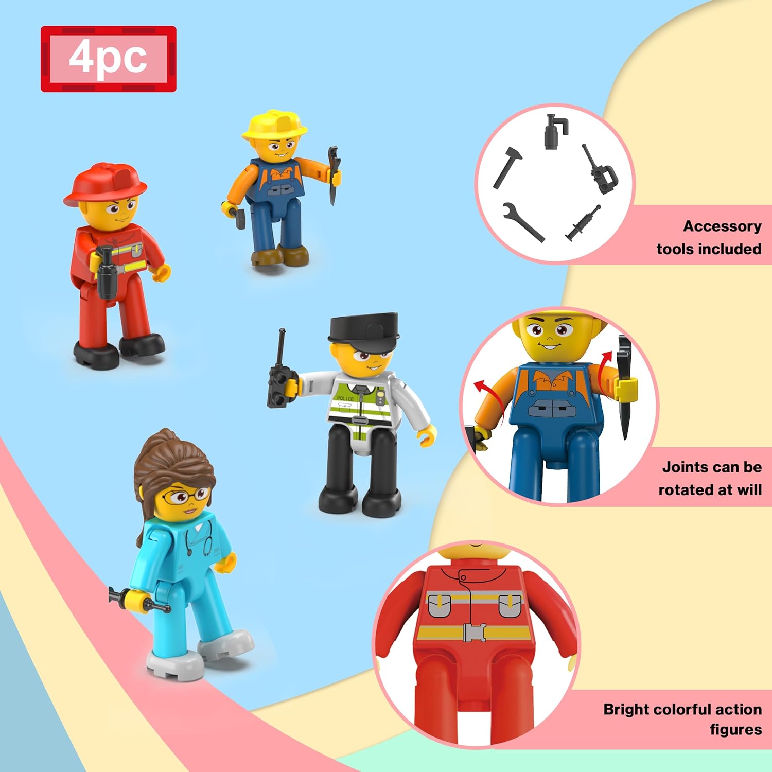 Ignite limitless imagination with the PicassoTiles 4-piece City Builder Character Action Figure set. Each dynamic figure comes with magnetic feet, allowing versatile play and seamless integration with other PicassoTiles magnet construction sets. Perfect for creative storytelling and building adventures, this set elevates playtime while encouraging hands-on learning and imaginative fun.