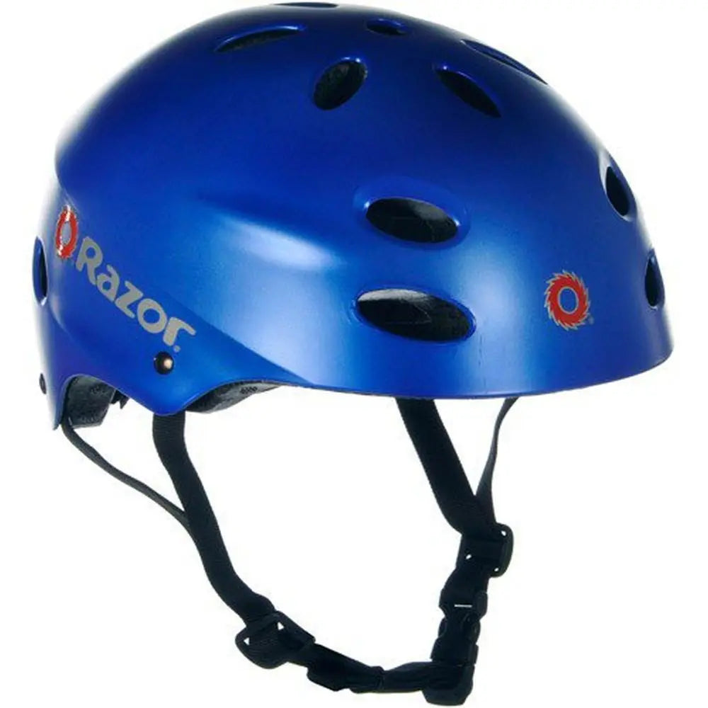 Keep young riders safe with the Razor V-17 Multi-Sport Helmet, designed for biking, skating, and other activities requiring protective headgear. Perfect for children aged 5 to 8, this helmet features ergonomic padding and an additional sizing pad set for a comfortable, customized fit. With 17 open-air vents to keep heads cool, an adjustable dial for the perfect fit, and side-release buckles for easy fastening, the Razor V-17 provides both comfort and superior protection. Its thick protective external shell and integrated nylon retention strap ensure maximum safety on the street or in the half pipe.