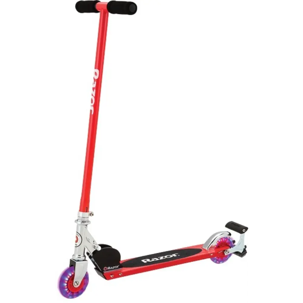Ignite your child’s outdoor adventures with the Razor S Spark Sport Scooter! Designed for kids aged 8 and up, this fun and durable scooter encourages physical activity while delivering exciting flair. Its steel T-tube and deck ensure strength and stability, while the patented folding mechanism makes it easy to carry and store. The rear Spark Bar produces sparks with every ride, and the 98mm light-up urethane wheels add style and long-lasting durability. Comfortable foam handle grips and a rear fender brake provide control and safety, making the S Spark a thrilling and secure ride for young riders.