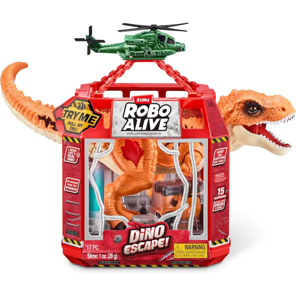 Get ready for an epic adventure with the Robo Alive Dino Escape play set, where a mighty dinosaur is on the loose and only you can stop it! Packed with thrilling lights, sounds, vehicles, and action-packed accessories, kids can race into action, set traps, and capture the raging dino before it wreaks havoc. With lifelike roars and realistic play features, this set fuels imagination, strategy, and non-stop prehistoric fun for young adventurers.