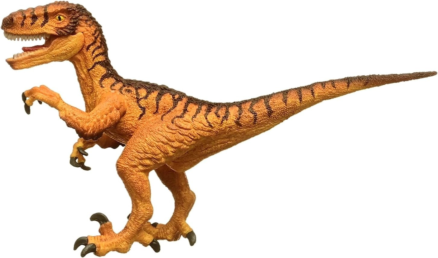 Bring prehistoric excitement to life with the Schleich Velociraptor Figurine! This agile two-meter-long carnivore is depicted rearing on its hind legs, snout lifted as if picking up a scent. Its powerful jaw, sharp fangs, and clawed hands make it a fearsome predator, while feathered skin adds realistic detail. Hand-painted with precision, this figure is perfect for imaginative and educational play.
