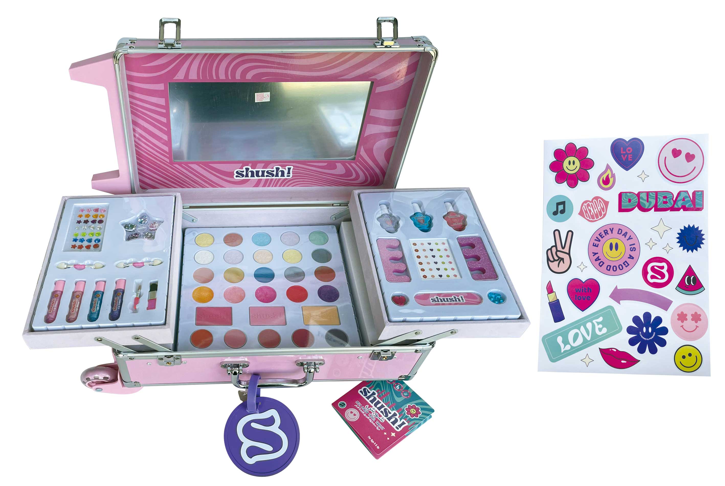Roll into a world of creativity with the SHUSH Mega Makeup Travel Trolley! This all-in-one beauty station is perfect for young fashionistas who love to create, explore, and shine. Featuring a vibrant, travel-friendly design and packed with a treasure trove of makeup goodies, this trolley transforms playtime into a glamorous adventure on wheels. Ideal for pretend play, dress-up parties, sleepovers, or everyday imaginative fun, it’s the ultimate glam-on-the-go experience for kids.