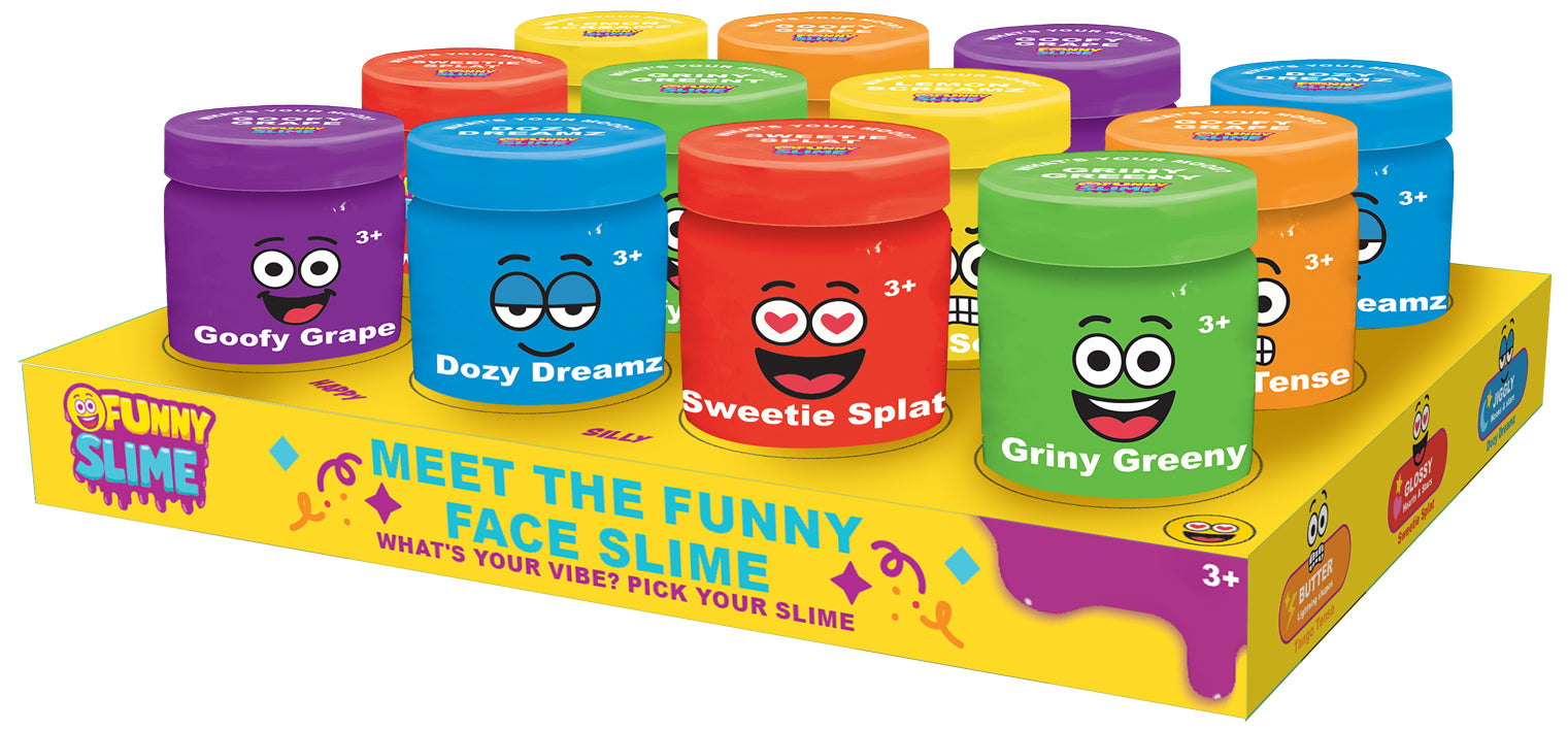 Stretch, squish, and giggle with the SLIMETIME Funny Face Slime Assortment (6 Styles)! Each slime tub features a hilarious collectible funny face character lid, making playtime more fun and interactive. Kids can enjoy hours of squishy, stretchy slime while collecting all six quirky designs. Perfect for sensory play, stress relief, and creative storytelling, this slime set is a must-have for slime lovers of all ages. Ideal for gifts, party favors, or adding to a slime collection.