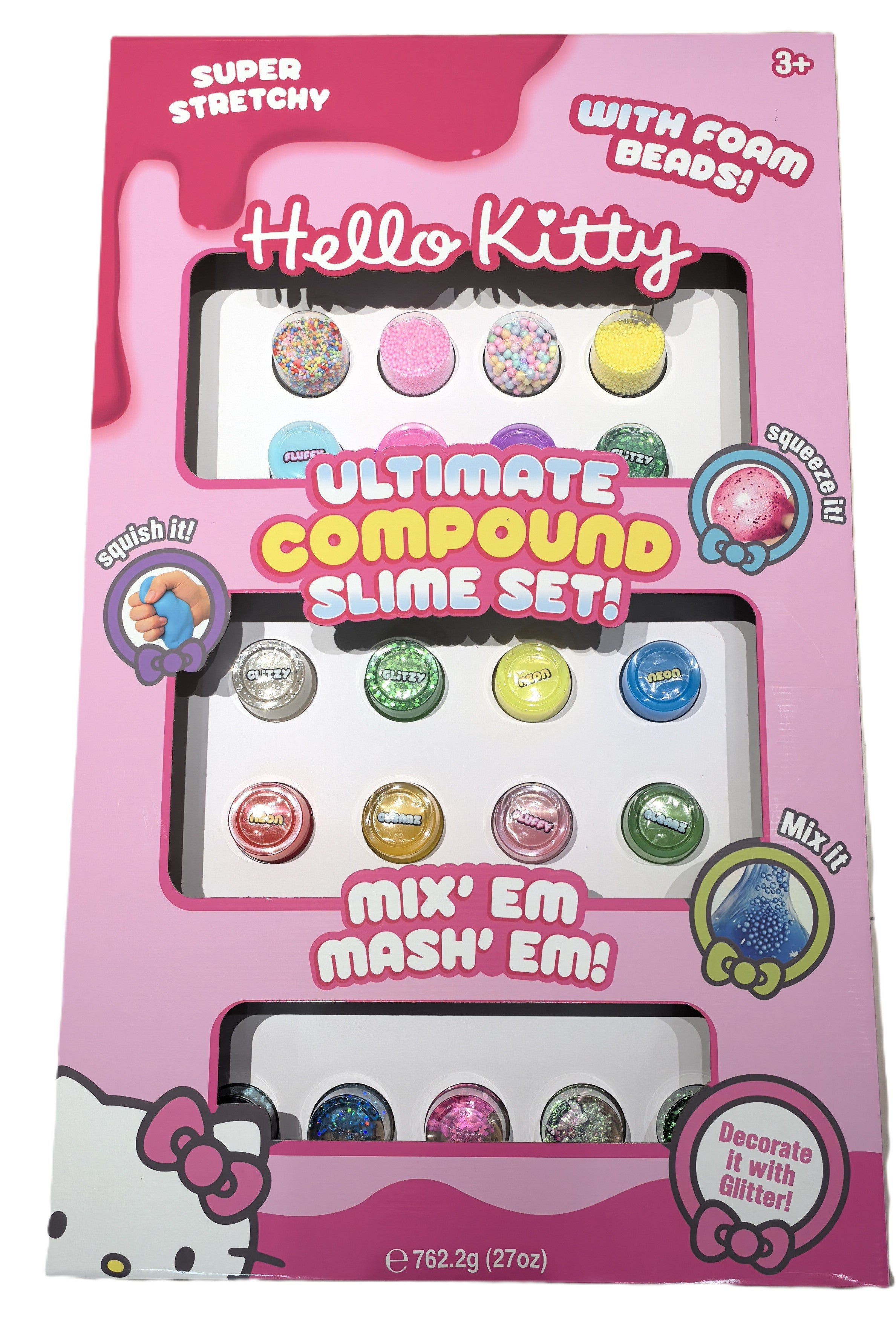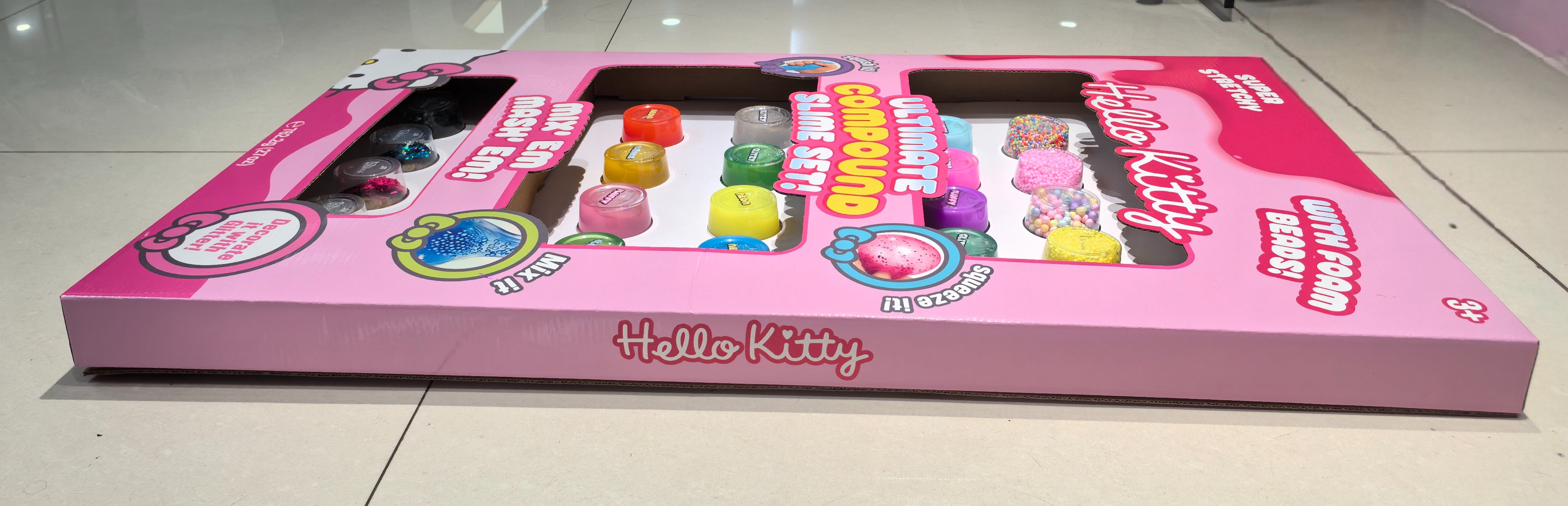 Squish, stretch, and sparkle with the SLIMETIME Hello Kitty Ultimate Slime Compound! This jumbo slime tub is perfect for slime fans and Hello Kitty lovers, offering a fun and engaging sensory play experience. With its vibrant, gooey texture and a touch of glitter, kids can swirl, squeeze, and create endless squishy adventures. It’s not only a satisfying fidget toy but also encourages creativity, stress relief, and imaginative play. A must-have collectible for Sanrio fans and slime enthusiasts alike.