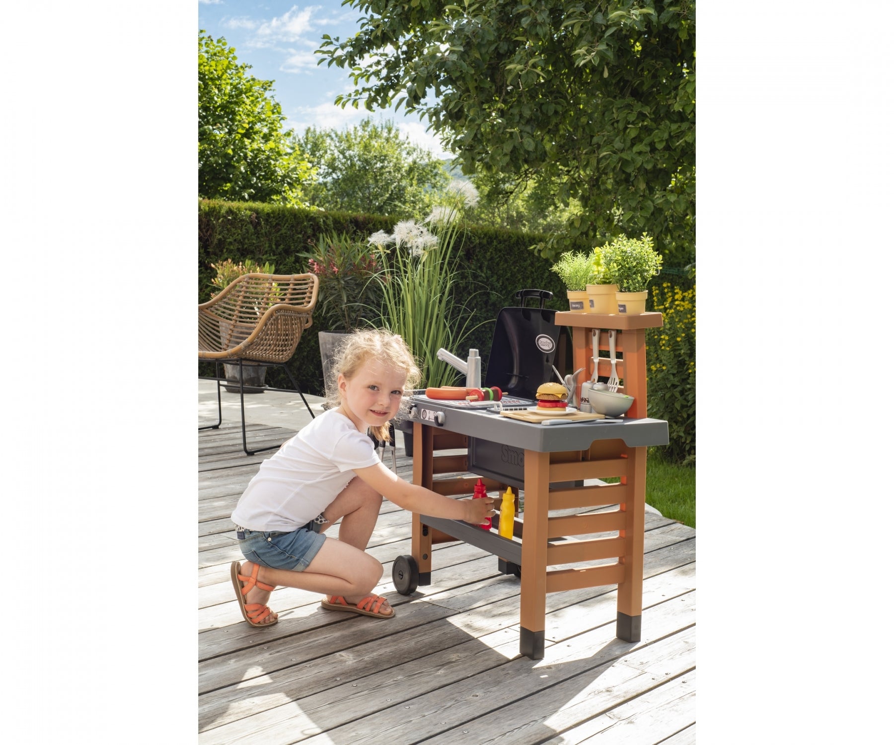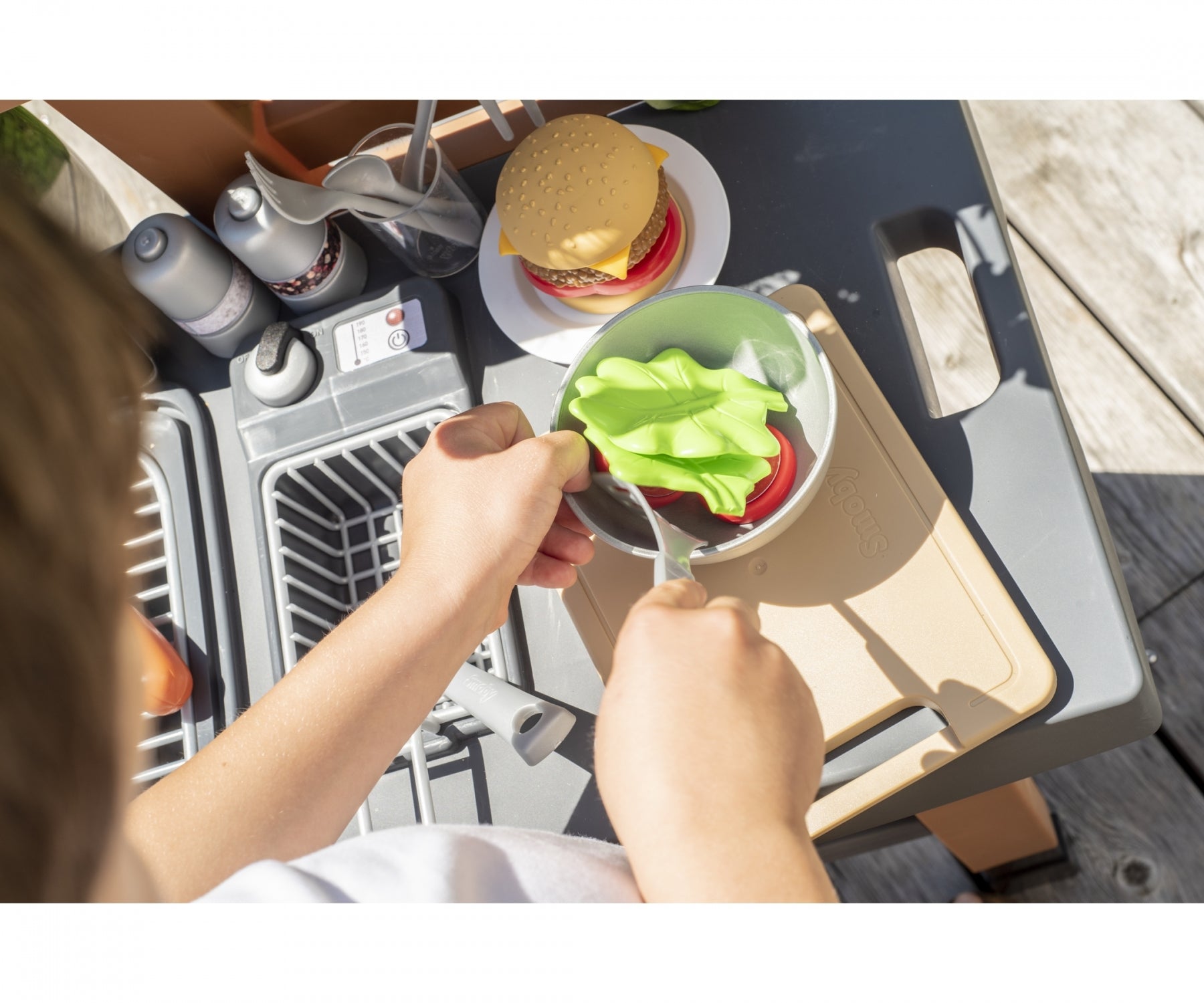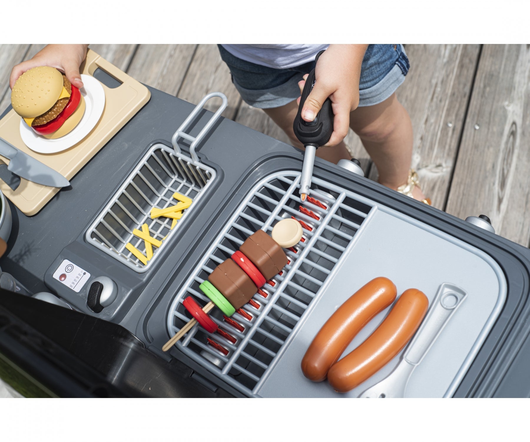 The Smoby Garden Kitchen is the perfect playset for little chefs who love pretend cooking! This charming outdoor-style kitchen features a grill, working sink with a water pump, and a roomy countertop made for slicing, mixing and preparing delicious imaginary meals. With mini utensils, food items and crockery included, kids can enjoy hours of creative play as they imitate real cooking and grilling—just like mum and dad.