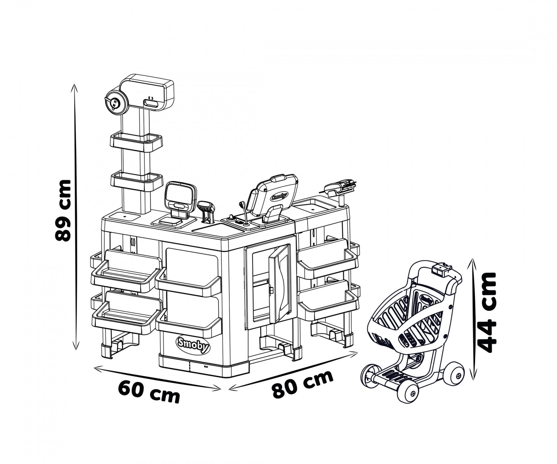 Bring the excitement of grocery shopping home with the Smoby Maxi Supermarket! This realistic and modern playset lets young merchants explore all aspects of shopping and selling. Featuring a fridge with a transparent front, a practical shopping trolley with a coin compartment, and a fully equipped checkout with scanner that lights up and beeps, kids can immerse themselves in hours of imaginative fun. The microphone (non-functional) adds extra role-play excitement.