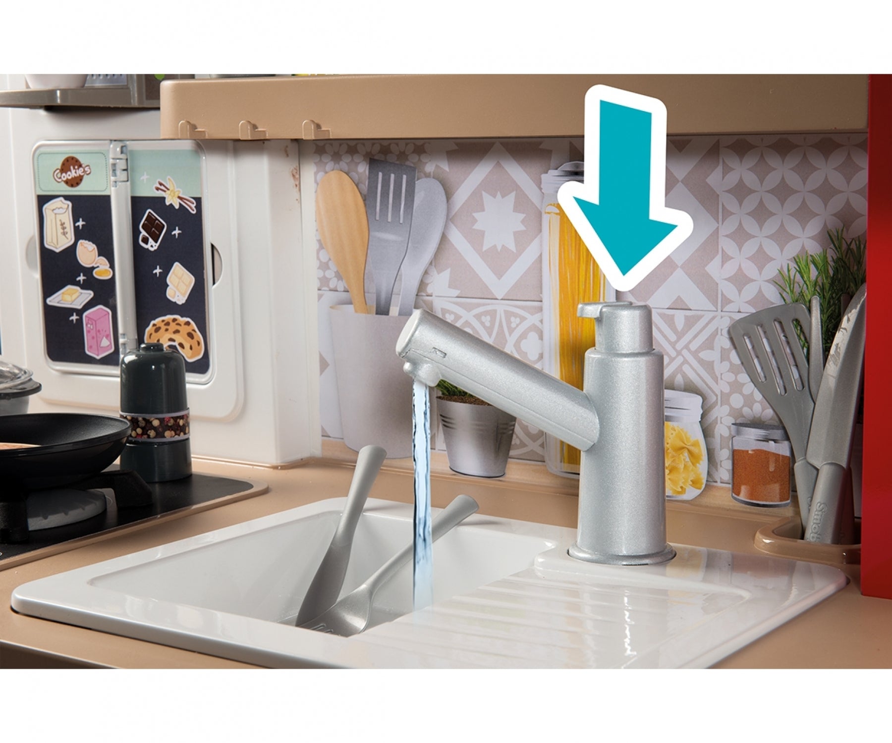 The Smoby Tefal Evolutive Kitchen is designed to grow with your child, offering long-lasting fun from ages 3 to 8. Its modern, stylish design fits perfectly into any room of the house, and the removable baseboards let you easily adjust the countertop height from 50 cm to 58 cm for comfortable play at every stage. Packed with magical features, this kitchen keeps little chefs entertained as they cook, imagine and explore.