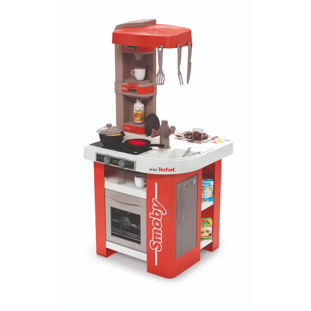 The mini Tefal kitchen attracts with its realistic vision and modern design. It has a large 360 ??° playing area. It includes 27 other accessories, including magic: pasta appears in the pot, meat and fish can be grilled. The kitchen has many cooking functions so that the kids can feel just like their parents. Among them are an electronic hob, espresso machine, soda machine, oven, refrigerator with a realistic appearance. There are enough shelves and storage space for all accessories.