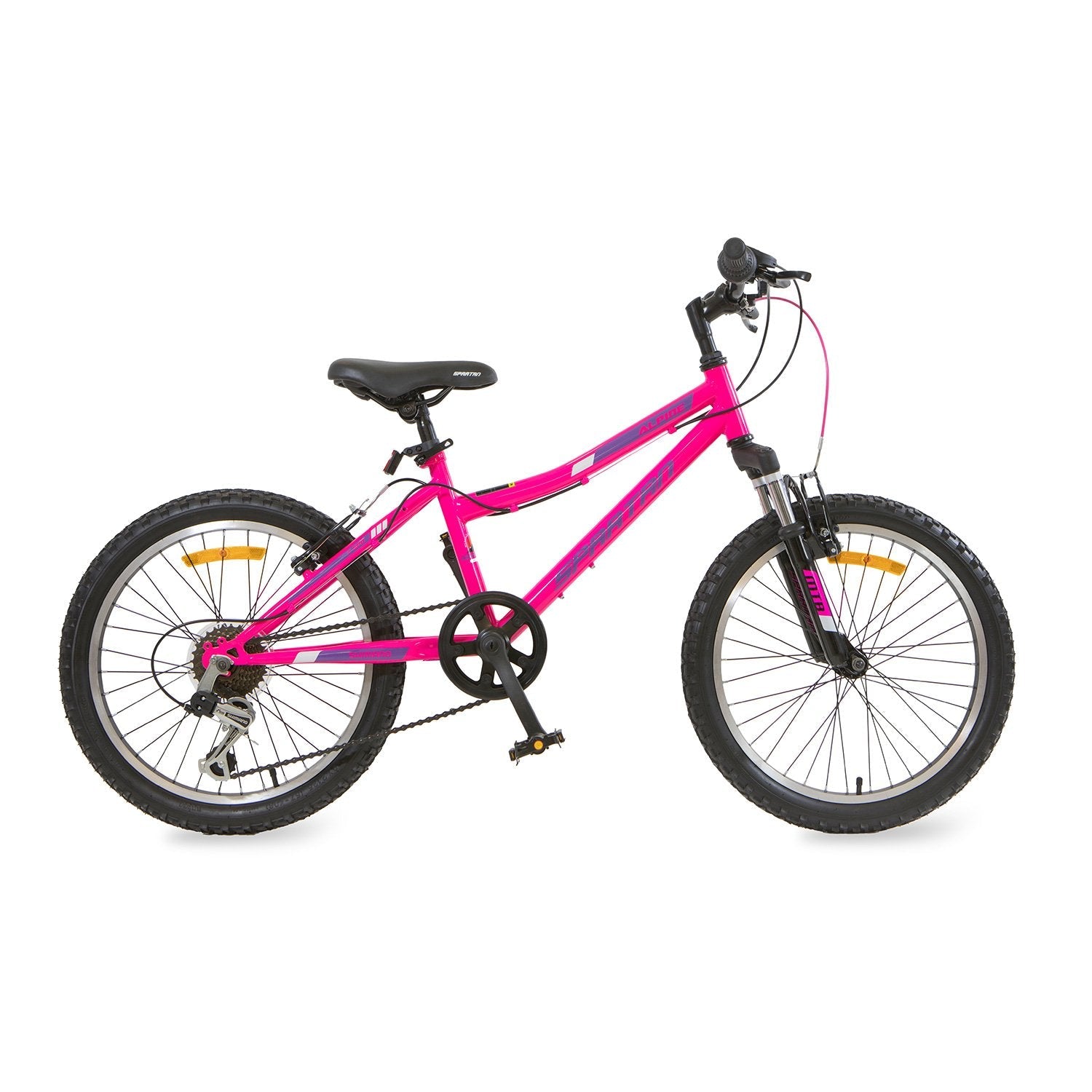 Looking for a bike that is tough and will grow with your child? Consider the 20" Spartan Alpine Girls. This mountain bike is on the lighter side and features front and rear linear pull brakes. The steel frame is tough and can withstand some abuse, while the alloy rims offer durability and quality. Your child will love the playful graphics as they roll on down the trails.