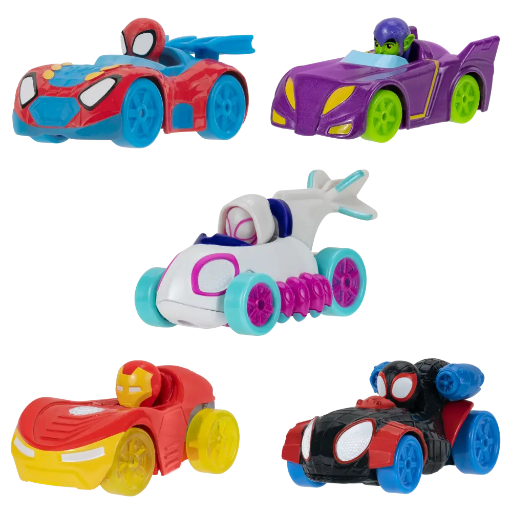 Introducing the Spidey and His Amazing Friends Amazing Metals Die-Cast Web Crawler Vehicle! This 3-inch vehicle is made of durable die-cast metal and features Spidey from the Disney Junior TV series. You can have exciting adventures with Spidey by moving him forward or backward with working wheels. Join Spidey on his missions to save the day and collect all the Amazing Metals vehicles in the set.