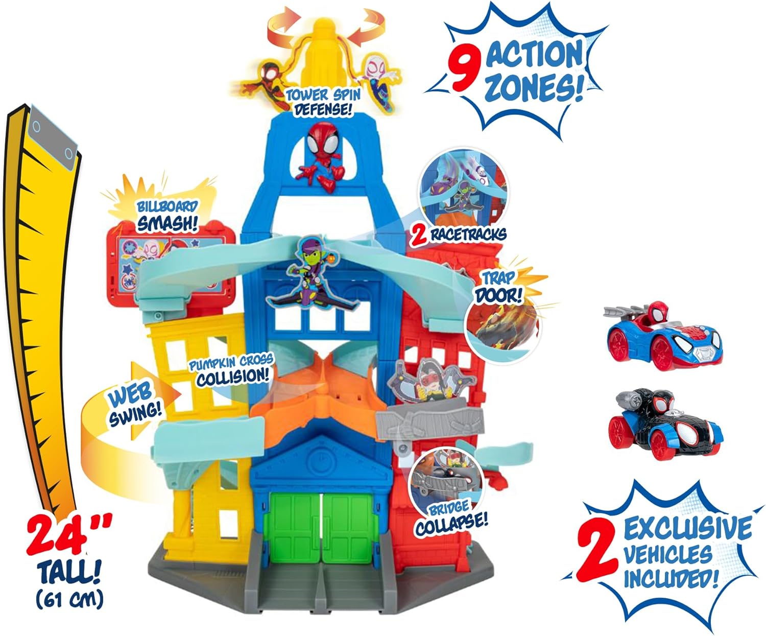 Introducing the Spidey Amazing Metals City Track Set, a thrilling addition to any young adventurer’s toy collection. This action-packed playset features a detailed cityscape track with exciting lights and sounds, bringing Spidey’s world to life. With 12 interactive action zones and a 3-level elevator, kids can guide Spidey through endless heroic missions and imaginative adventures. The set includes a 3-inch diecast vehicle, perfect for high-speed fun and creative play.