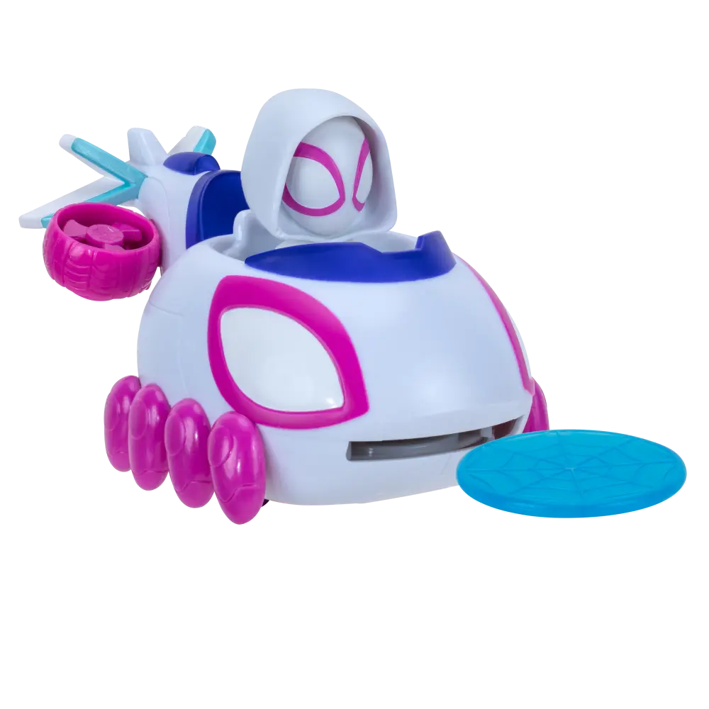 Spidey dashing around the city, and now your little spidey-fan can too! Load and launch the web disc in each Disc Dasher vehicle! Each 5" vehicle features a Super Hero from Spidey new show. Each Disc Dasher vehicle comes with 2 discs. When trouble appears, shoot out one of the web discs to keep it under wraps. Your little one will love each of these colorful toys that can zoom all around your playroom just like Spidey!