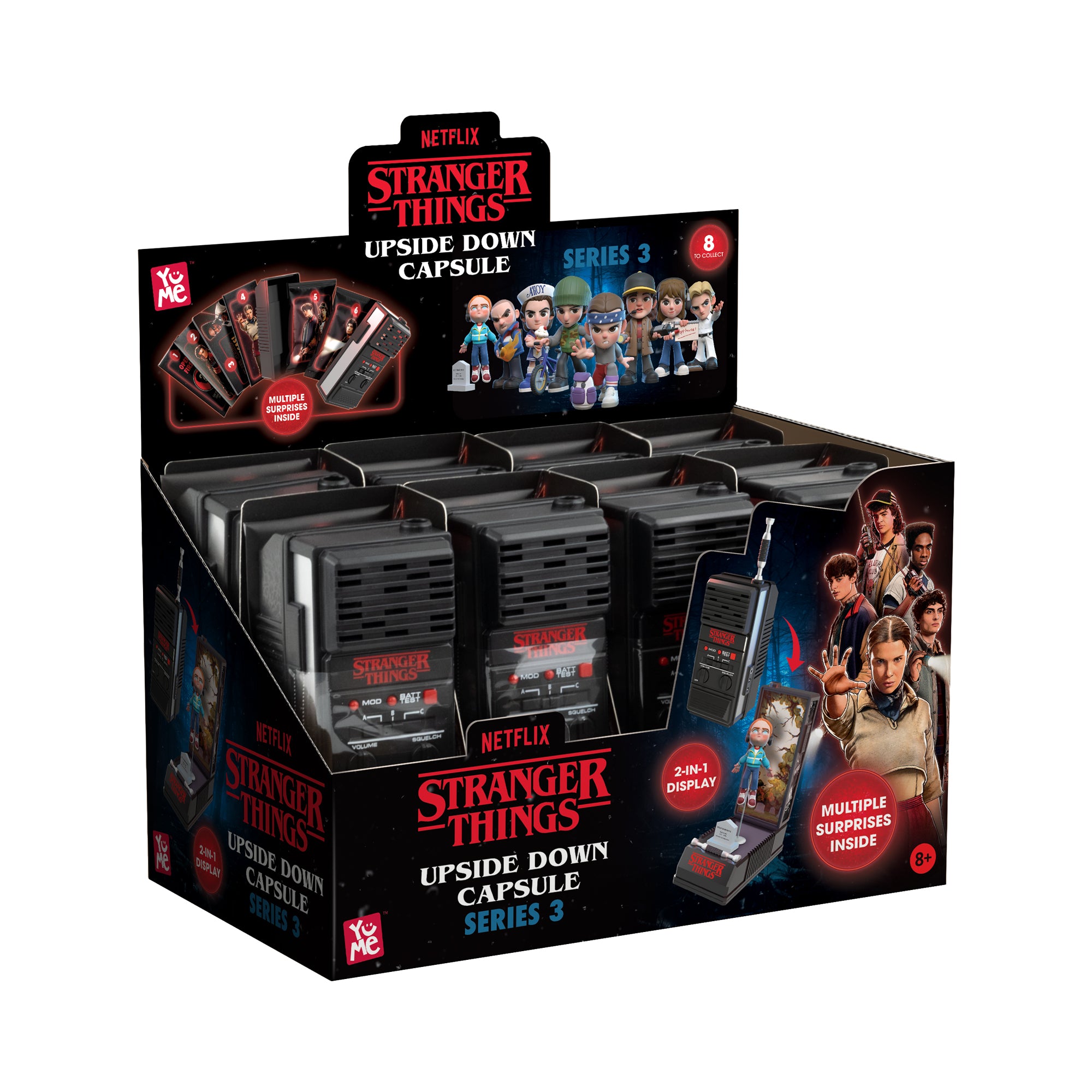 This collectible set features chibi-style mini figures of fan-favorite characters from the hit Netflix series, each with iconic accessories and outfits that capture memorable moments from the show. Perfect for recreating scenes or displaying proudly, the set includes a stylized vintage walkie-talkie case for creative display and storage, making it a must-have for any Stranger Things fan.