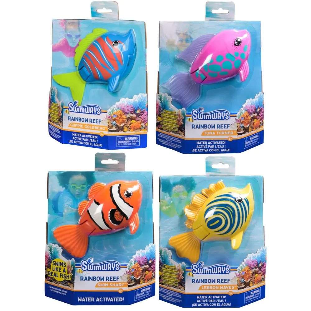 Turn your pool into a colorful tropical reef with the Swimways Rainbow Reef swimming pool dive toys! Dive under the water to see the magical world of Rainbow Reef come to life! These life-like fish toys paddle through the water in any direction, just like a real fish. This kids pool toy changes speeds as it swims, and moves up and down through the water, so you can chase them or swim alongside your aquatic friend.