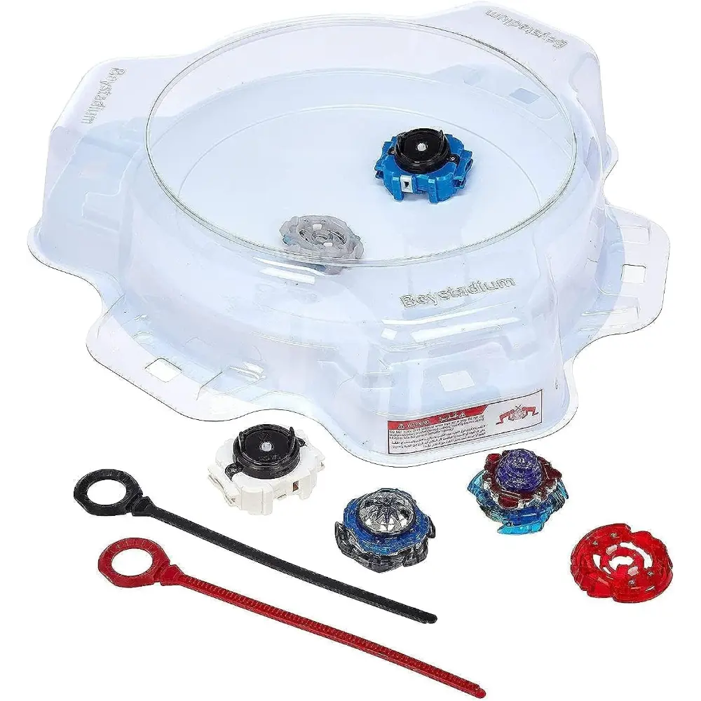 Unleash fierce battles with the Takara Tomy Beyblade Beybattle Burst Rise Battle Set Stadium S5, featuring the powerful Ace Dragon DX5 and Valtryek V5 tops. This all-in-one set includes 2 Beyblades, 2 launchers, and 1 dynamic stadium for immediate action. Ace Dragon DX5 features a Sting Disc with spring-loaded recoil that accelerates with every hit, while Valtryek V5 uses impact force to shrink its driver tip, delivering low-angle attacks with strengthened lock resistance. Built for explosive clashes and high-speed action, this set brings GT abilities to life, offering a competitive edge right out of the box.