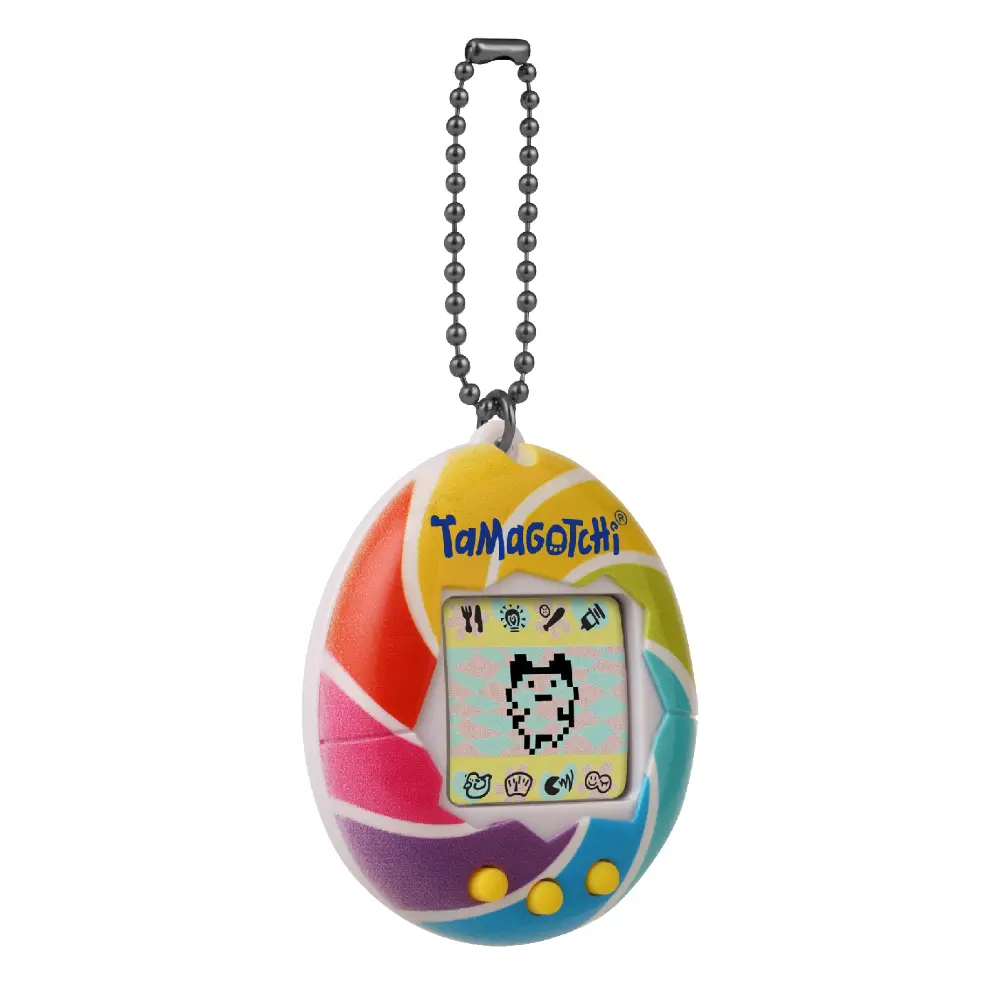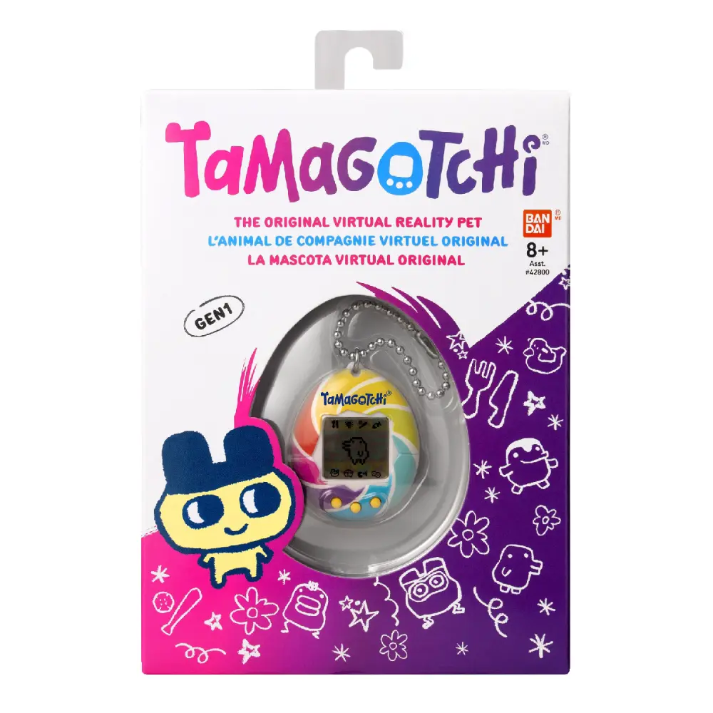 The iconic digital pet from 1997 is back with a sweet new look! The Tamagotchi Original Candy Swirl brings back the nostalgic fun of caring for your very own virtual friend. With authentic Generation 1 programming, you can feed, clean, and care for your Tamagotchi — and even discipline it when needed! Play the Character Game and see how your care and attention determine which adult Tamagotchi your pet grows into. Portable and fun, it’s the perfect pocket-sized companion for kids and collectors alike.