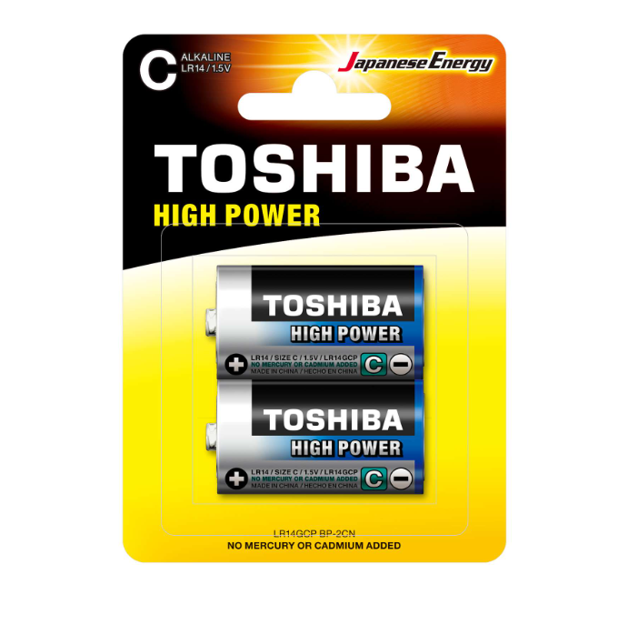Toshiba High Power C 1.5V Alkaline Batteries deliver reliable, long-lasting energy for high-performance and everyday devices. With a high capacity-to-weight ratio and eco-friendly design free from mercury, cadmium, and lead, they provide a safe and efficient power source. Fully charged and ready to use, these C-size batteries are perfect for toys, flashlights, portable radios, and other gadgets that require consistent performance.
