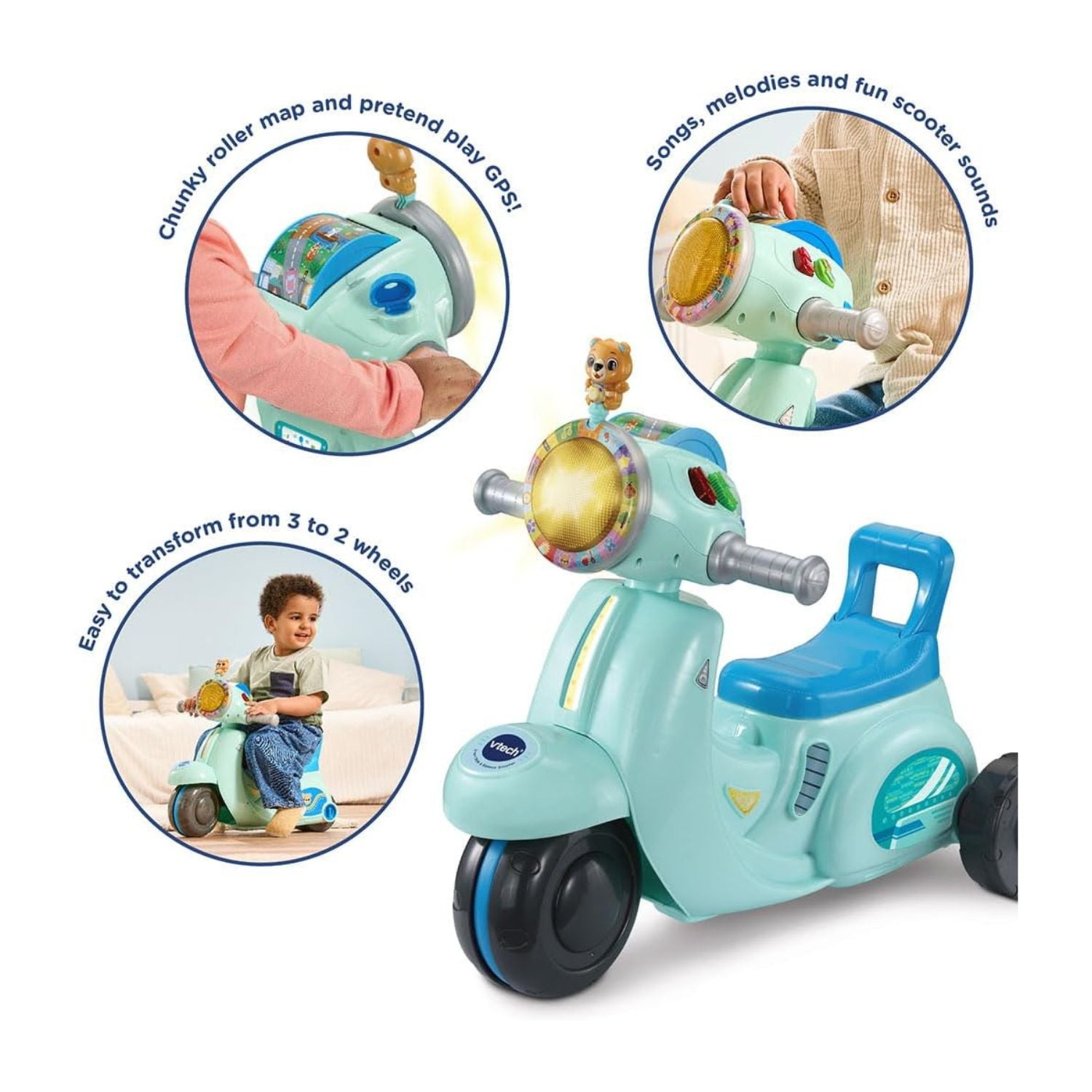 Hop on and explore! The VTech 2-in-1 Ride & Balance Scooter starts as a 3-wheeled trike and easily converts into a 2-wheeled balance bike, growing with your child. Packed with interactive lights, sounds, and a chunky roller map, it encourages active, imaginative play while developing balance, coordination, and motor skills.