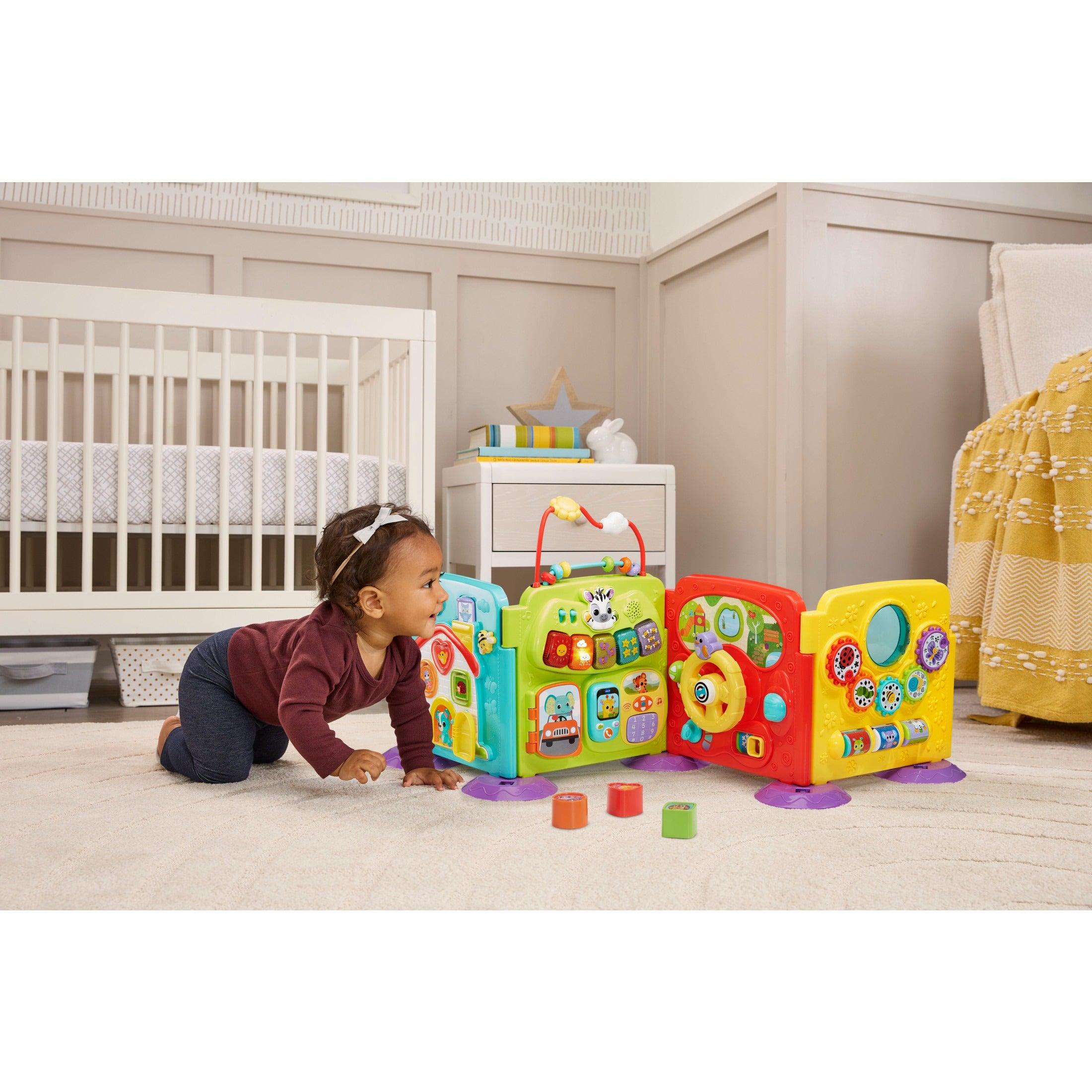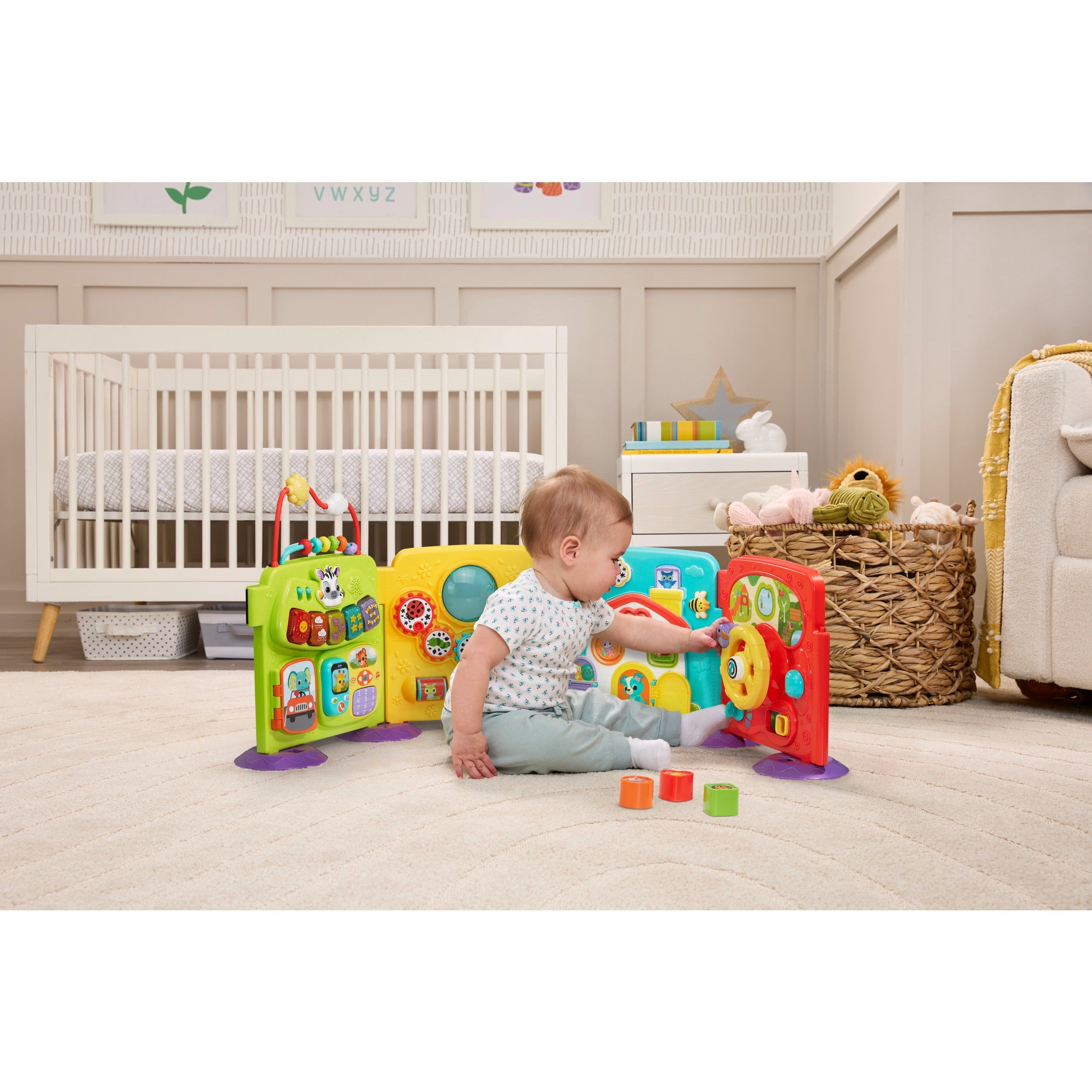The VTech 4-In-1 Steps and Stages Activity Center is a versatile, battery-operated play center that grows with your child. Designed for multiple stages of development, it offers interactive learning, music, and lights that encourage crawling, standing, and early walking. Toddlers can explore buttons, shapes, and sounds while developing fine and gross motor skills, problem-solving, and early learning concepts.