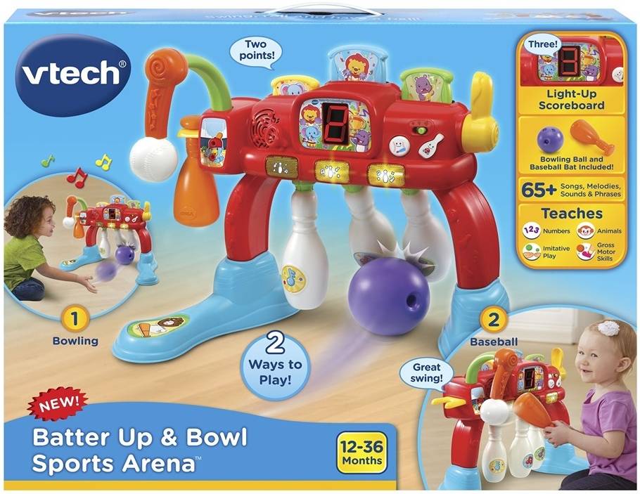 Hit a home run or bowl a strike with the VTech® Batter Up & Bowl Sports Arena! This exciting 2-in-1 electronic sports centre combines baseball and bowling fun to help kids build motor skills, coordination, and early learning concepts through active play.
