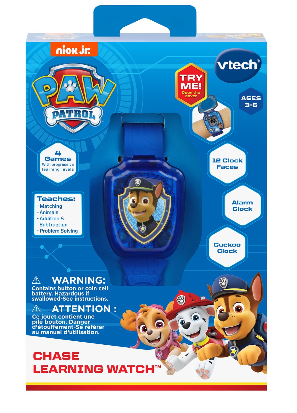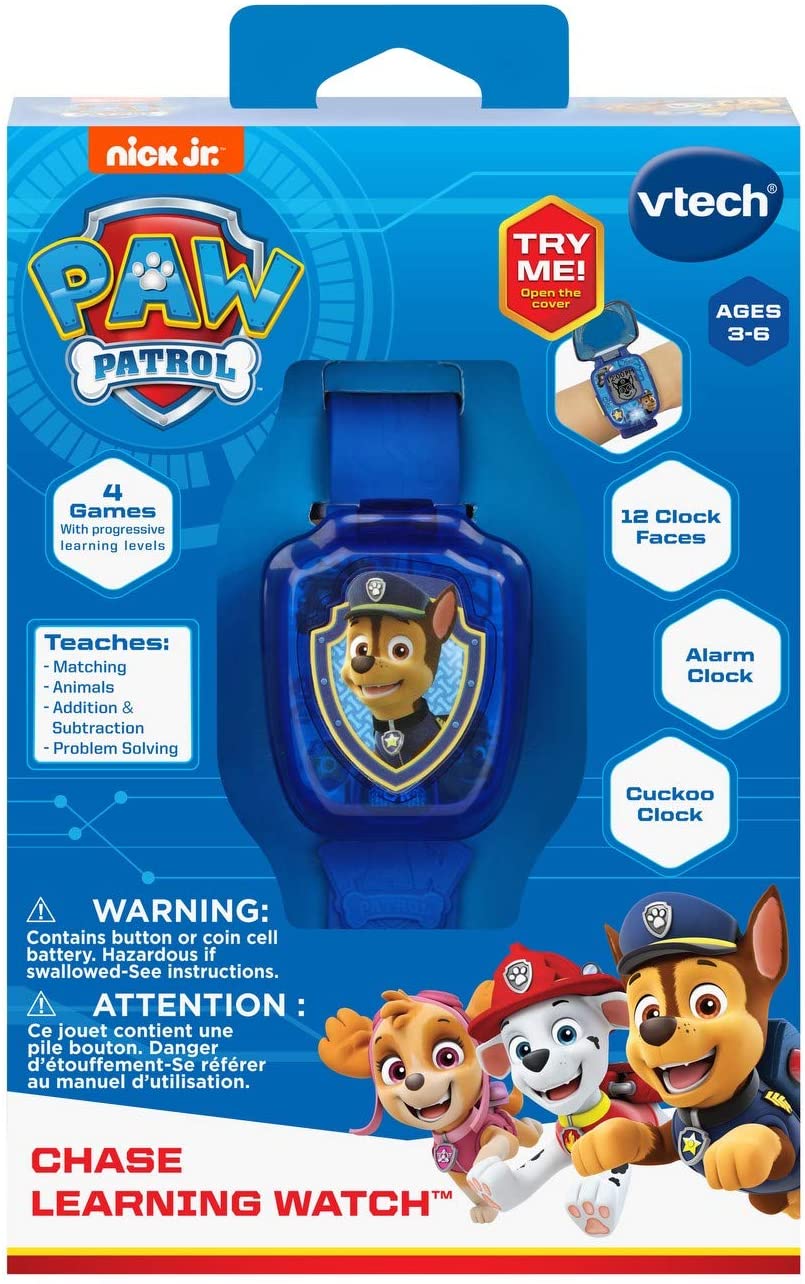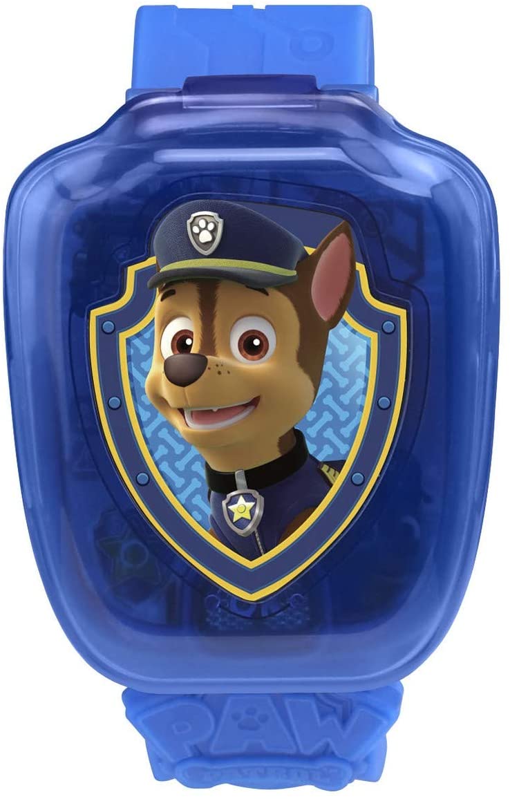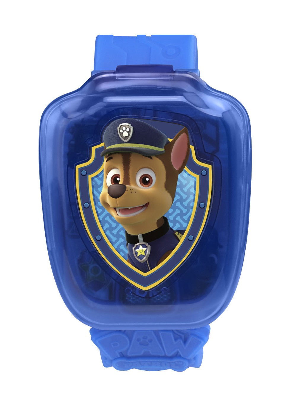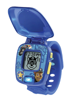 Help your child join the PAW Patrol team with the VTech Chase Learning Watch! This interactive wearable gadget features Chase, Marshall, or Skye, including the voice of Ryder, and lets kids play four fun mini-games that teach pattern recognition, problem-solving, animal tracks, and basic addition and subtraction. The watch also functions as a full-featured digital timepiece with an alarm, timer, and stopwatch, while 12 interchangeable PAW Patrol-themed watch faces let kids customise their display. A glowing light adds an extra touch of fun to this educational gadget.
