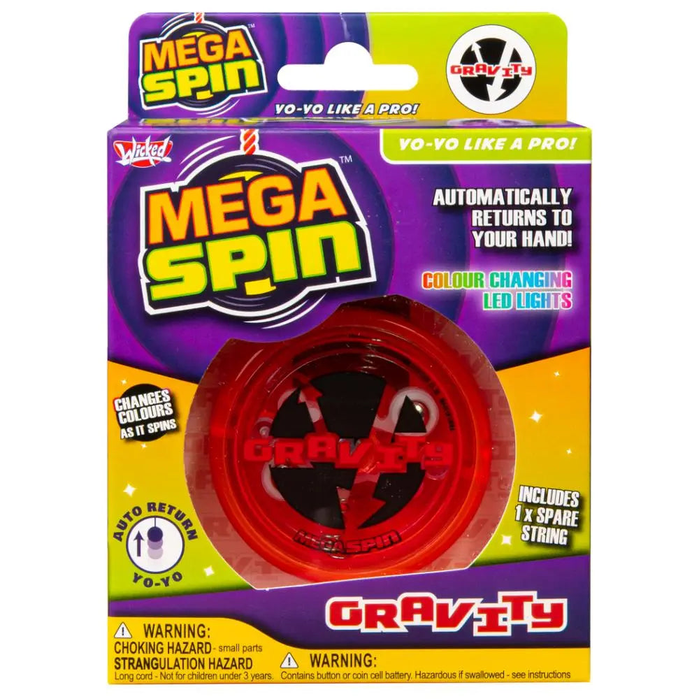 Discover the Wicked Mega Spin Yo-Yo range, designed for players of all skill levels. With four unique models, kids can learn beginner tricks, enjoy effortless play, or master advanced spins. From walking the dog to hopping the fence, each yo-yo delivers smooth performance and hours of fun. Featuring long spin times, auto-return technology, and even colour-changing LED lights, Wicked Mega Spin is perfect for beginners and aspiring pros alike.