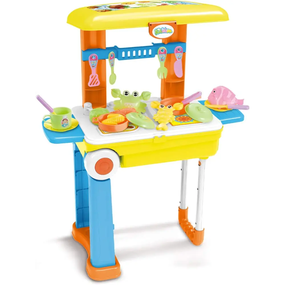 This Power Joy Yum Yum Tableware Suitcase is a perfect playset for children who loves to enjoy kitchen role playing. Playset includes 31 pieces of tableware utensils and accessories that comes with a suitcase luggage that will help organize all the tablewares.